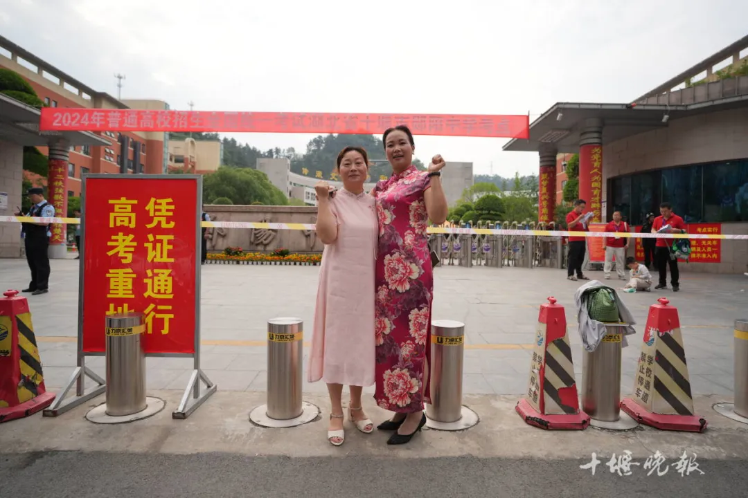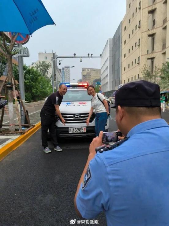 6月7日,在黑龙江哈尔滨市第九中学考点外,一名考生进入考场前伸手碰触“高粽”。新华社记者 王建威 摄