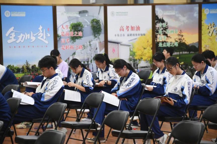 6月7日,考生在天津海河中学考点门外复习。新华社记者 孙凡越 摄
