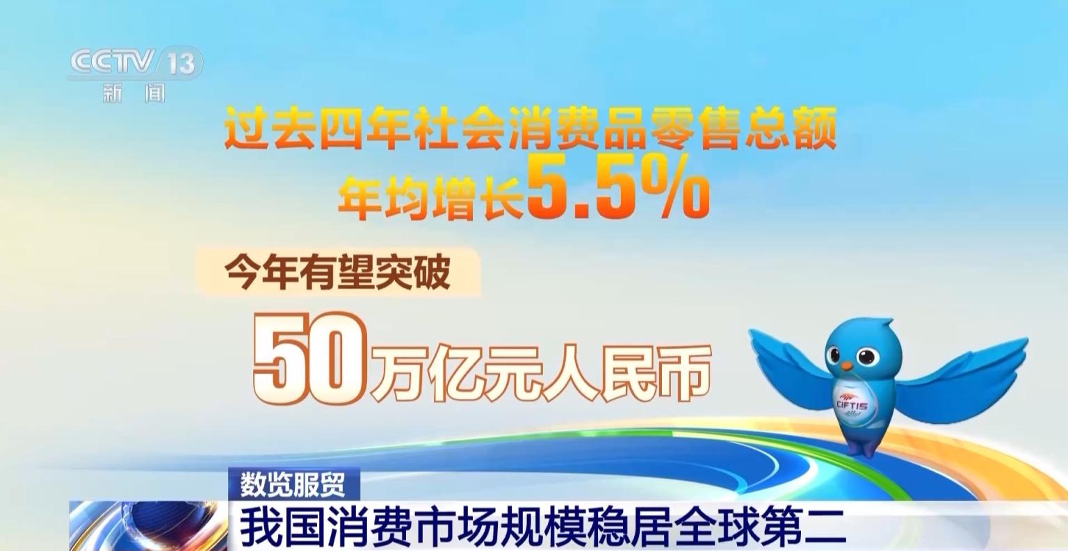 “十四五”期间,我国消费市场规模稳居全球第二,过去四年社会消费品零售总额年均增长5.5%,今年有望突破50万亿元人民币。