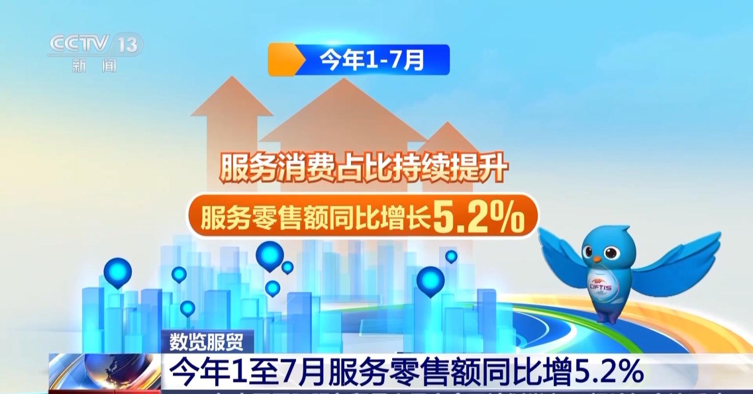 今年1—7月,服务零售额同比增长5.2%,服务消费占比持续提升。