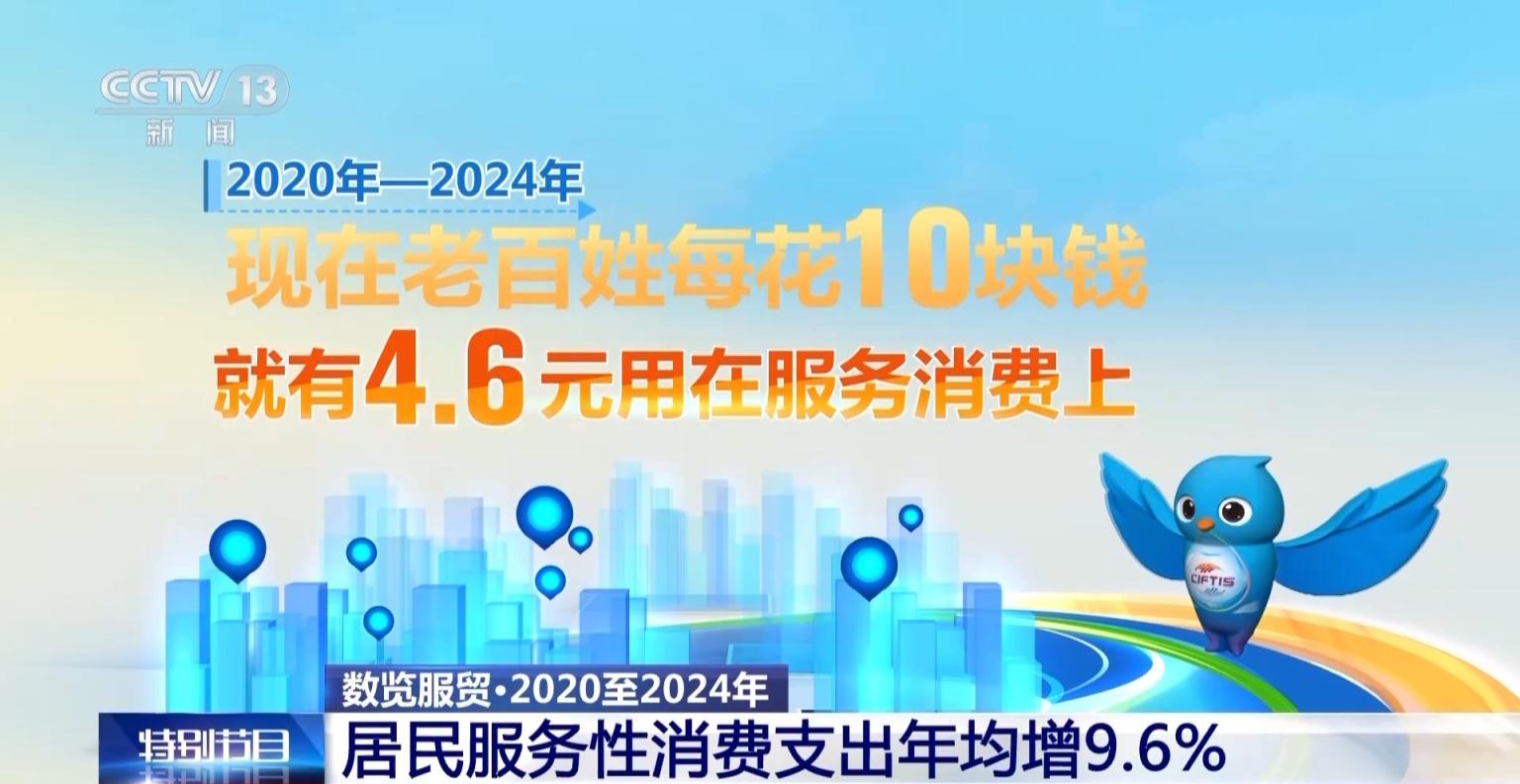 其中,服务消费比商品消费增长势头更快,成为扩大消费的重要动力。2020年至2024年,居民服务性消费支出年均增长9.6%,现在老百姓每花10块钱,就有4.6元用在了服务消费上。