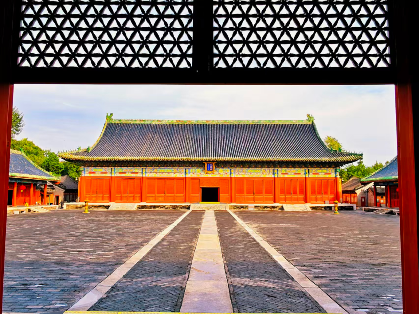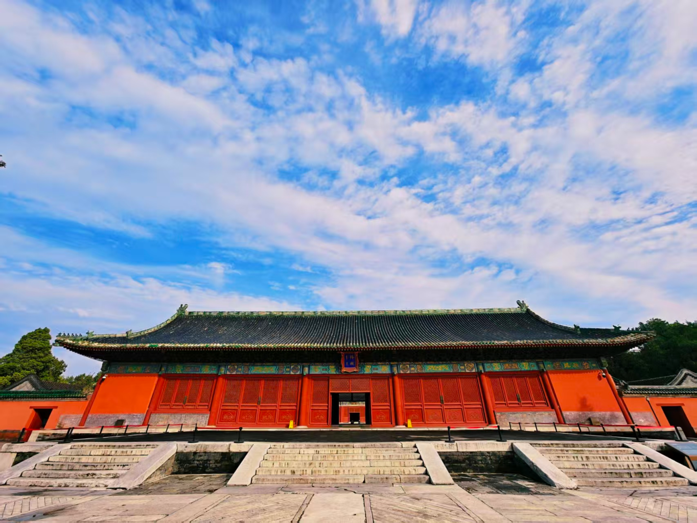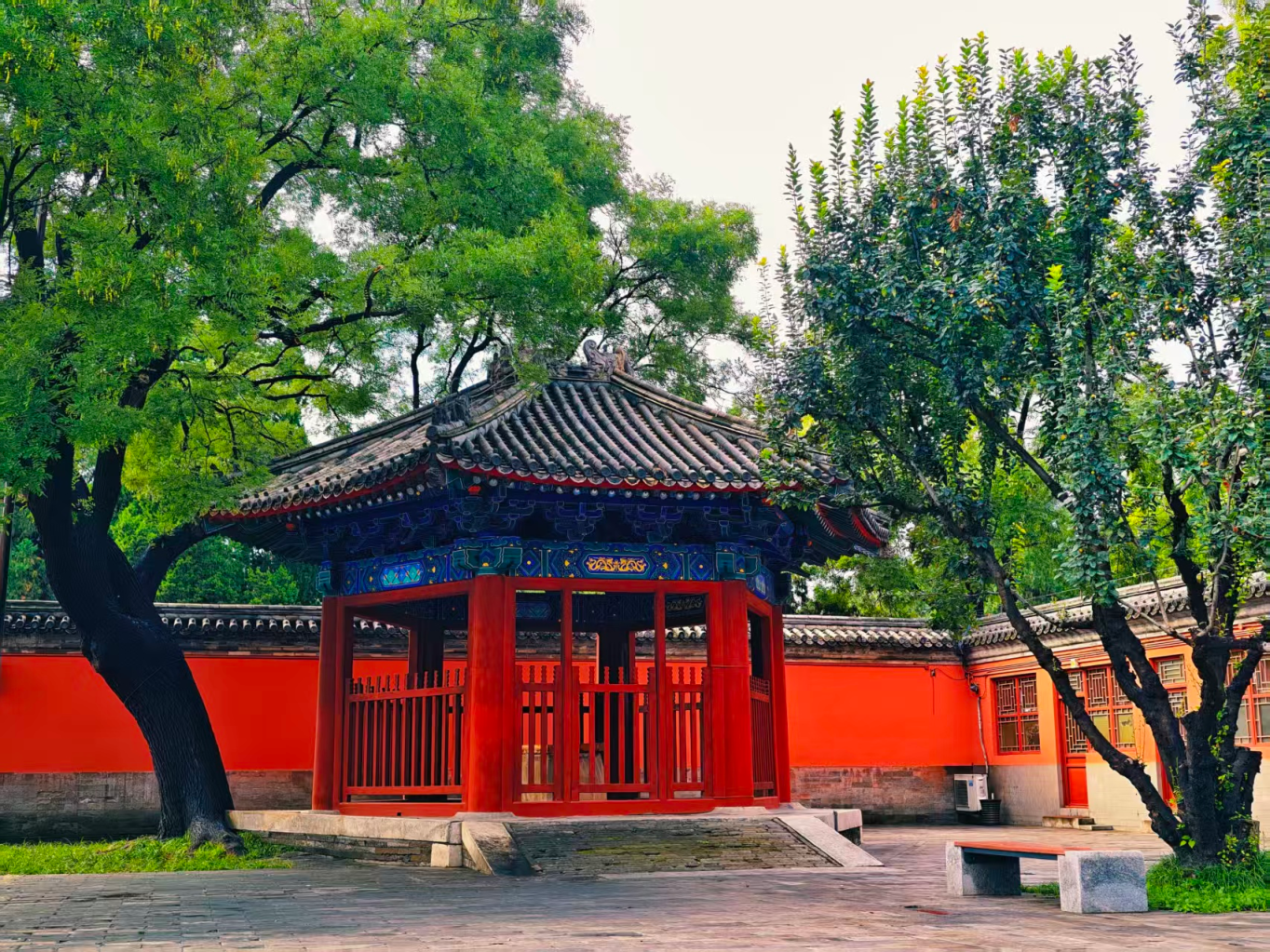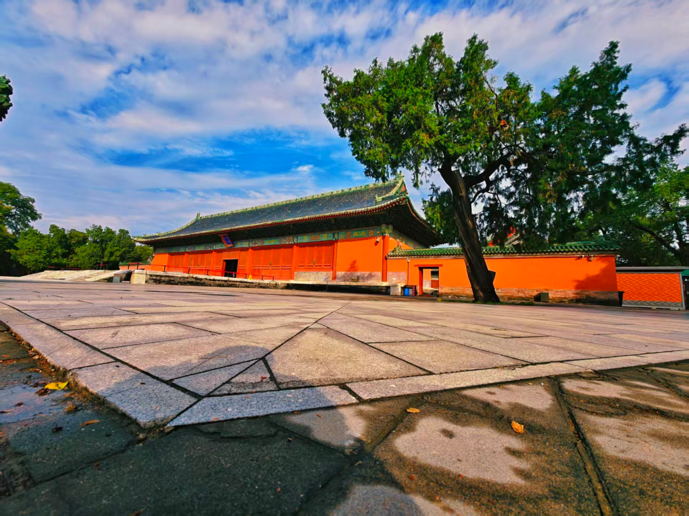 10月11日,北京雨后初晴,碧空如洗,白云悠悠。北京古代建筑博物馆巍峨矗立,朱墙黄瓦耀金辉,斗拱飞檐破云霄,尽显磅礴大气。