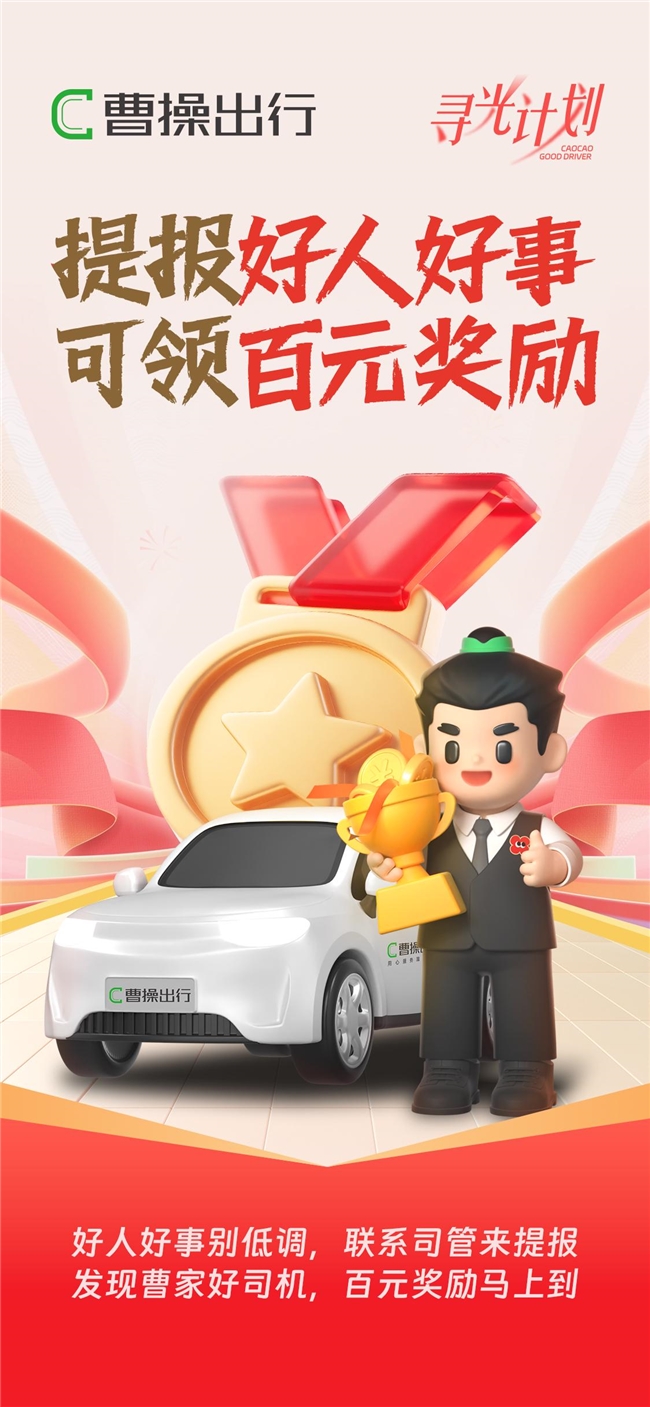 今年7月,曹操出行已经正式启动“寻光计划”,并设立“曹家好司机”奖项,旨在奖励践行善举的司机师傅们。