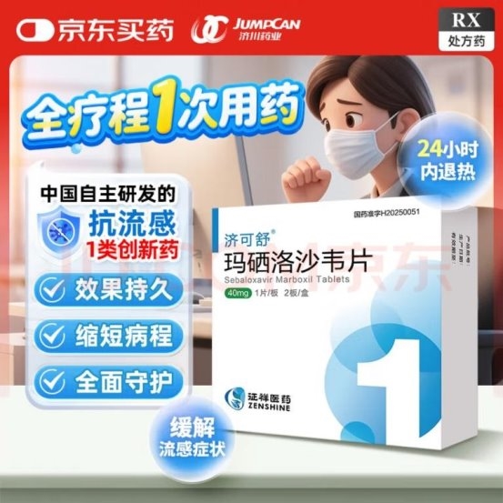 近日,全疗程仅需1次用药的抗流感1类创新药济可舒(通用名:玛硒洛沙韦片)在京东健康平台线上首发,依托京东健康“新特药全网首发第一站”的优势能力,进一步推动济可舒在抗流感治疗中的可及性和便捷性,为更多流感患者提供新的治疗方案。
