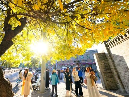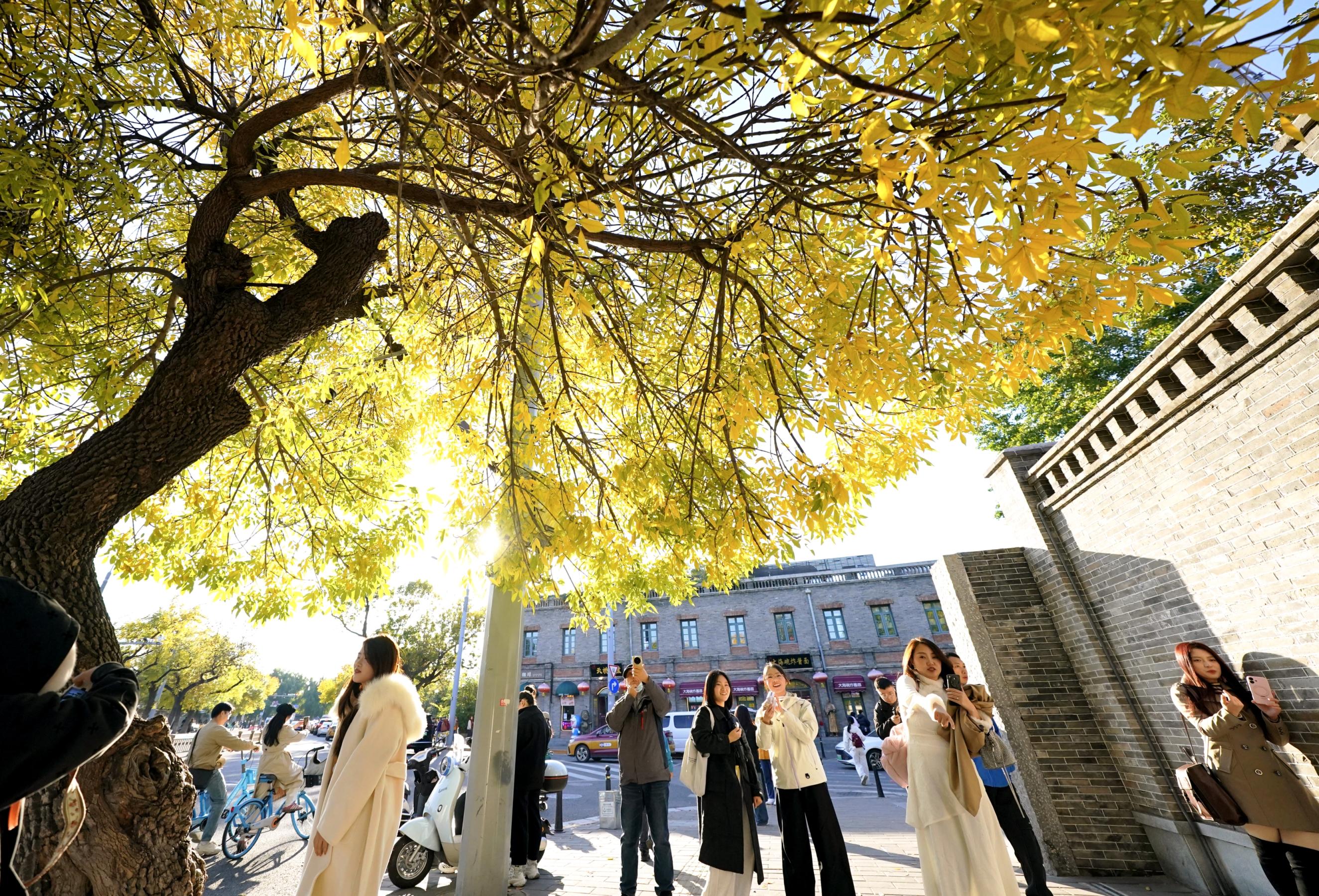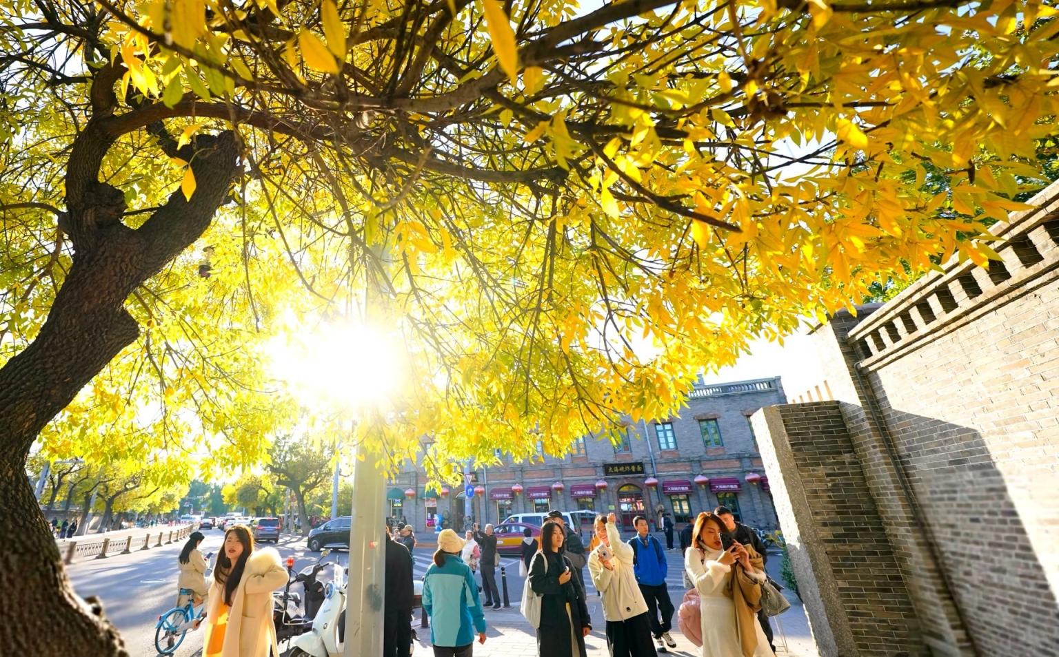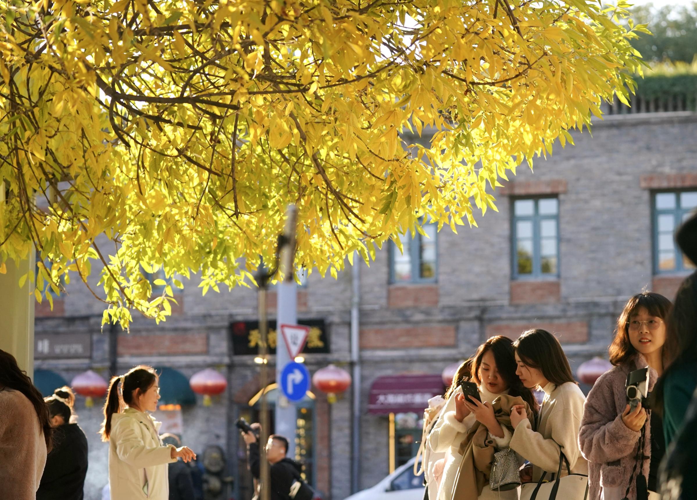 五四大街秋色正浓,道路两侧的白蜡树褪去翠绿,换上金黄盛装,与沿街的历史建筑相映成趣。