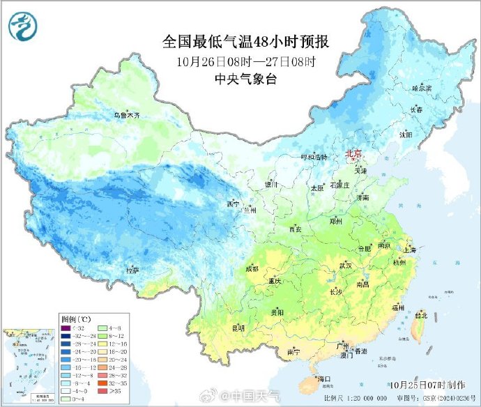 今天(10月25日)起,新一股冷空气将开始影响我国北方,未来三天北方多地将再度刷新气温新低,太原、西宁等地或首次降至冰点及以下,内蒙古东北部、黑龙江等地迎明显降雪。此外,今明两天青藏高原降雪持续,出行需注意交通安全。