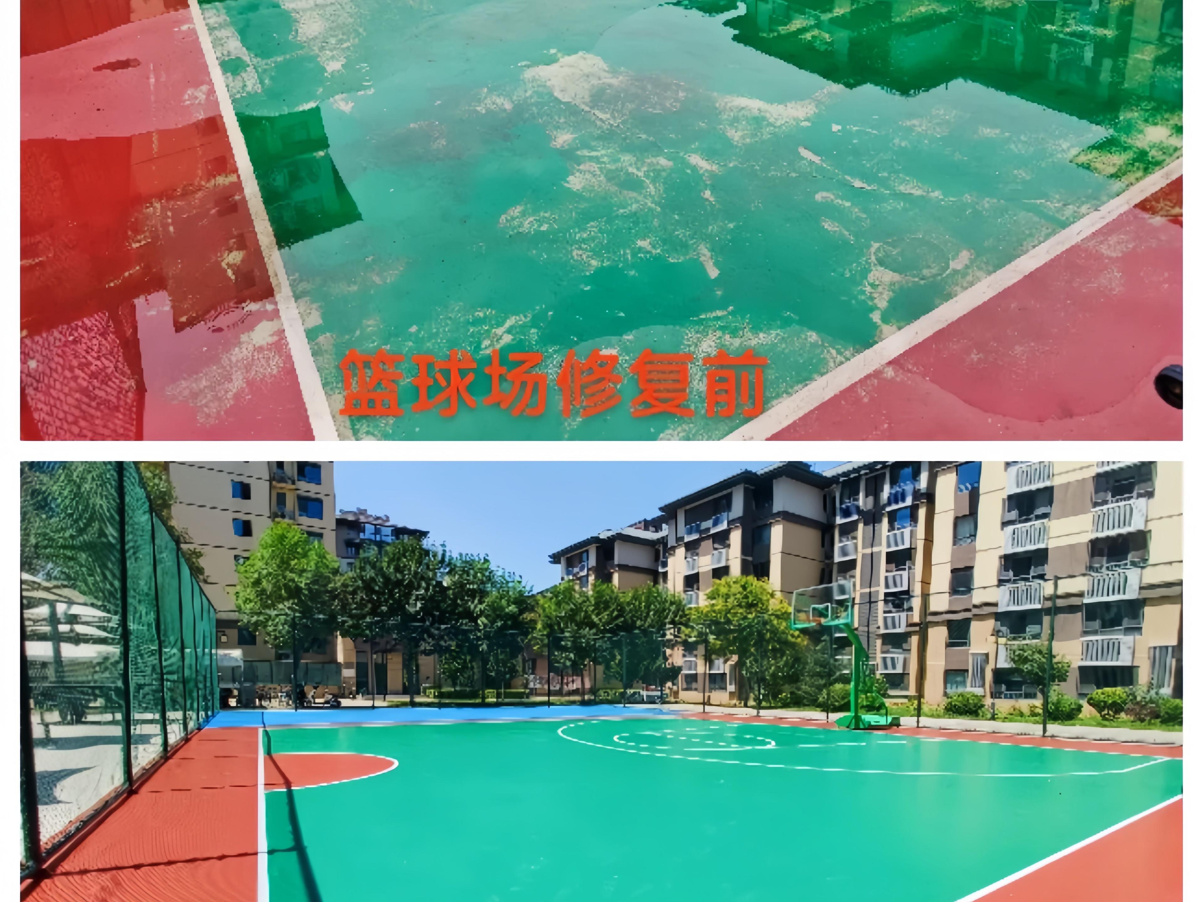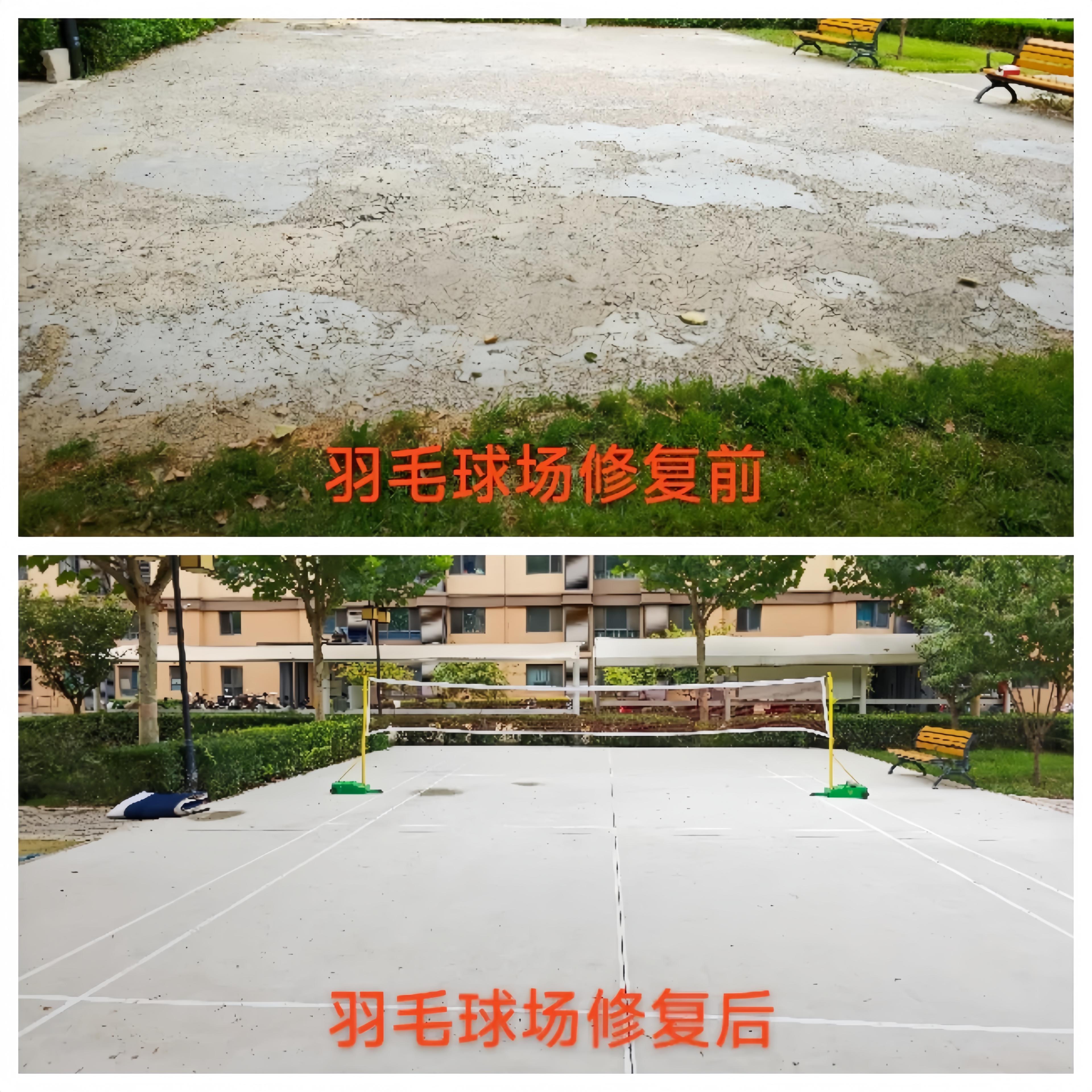 施工团队针对不同场地问题精准施策:对老化的篮球场,先铲除破损塑胶层,修复基础地面后铺设硅PU面层,重新规划球场标线;对沙化的羽毛球场进行彻底清理、平整地面,然后铺设混凝土层,并在场地周边增设暗道牙。社区党支部全程跟进项目进展,并联合物业公司、发动党员和志愿者对项目工程进行监督,确保工程质量过硬、经费使用规范。