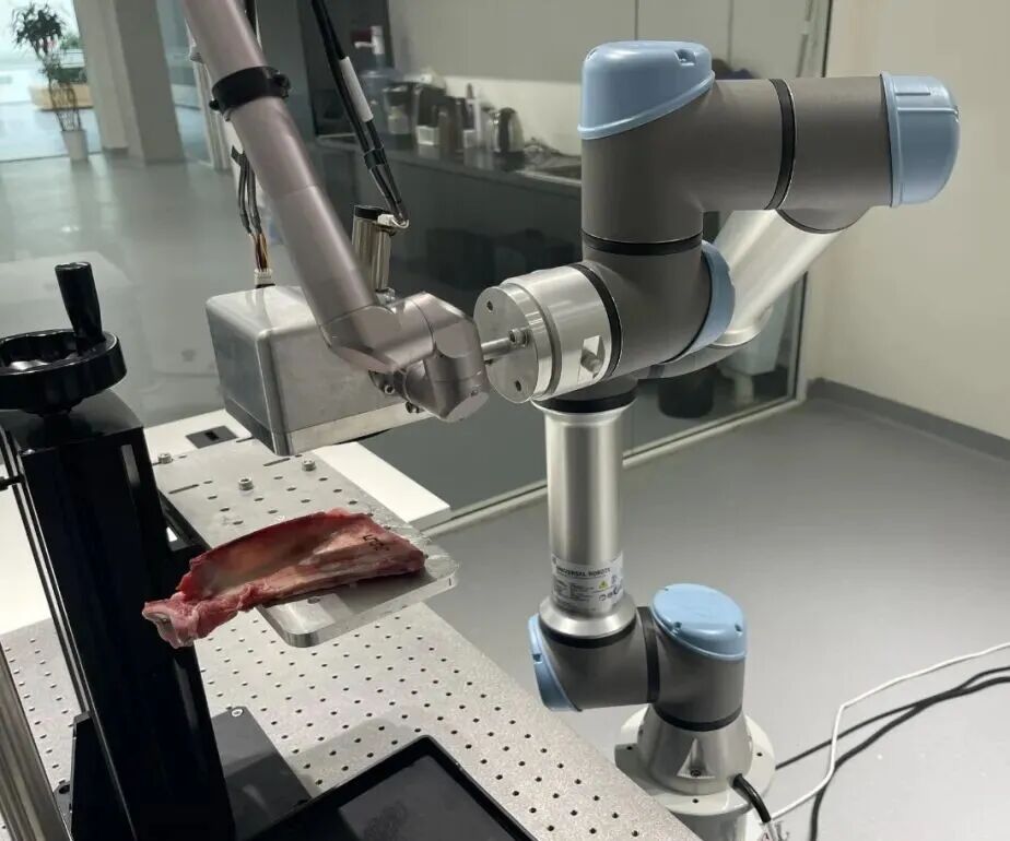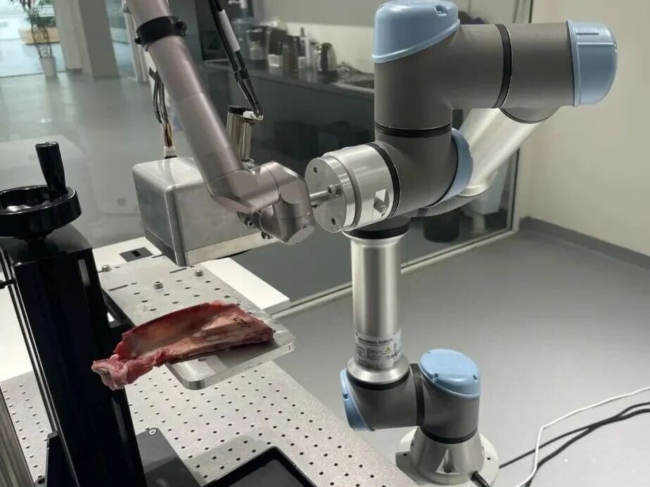 利用AI激光骨科手术机器人切割离体动物骨骼过程