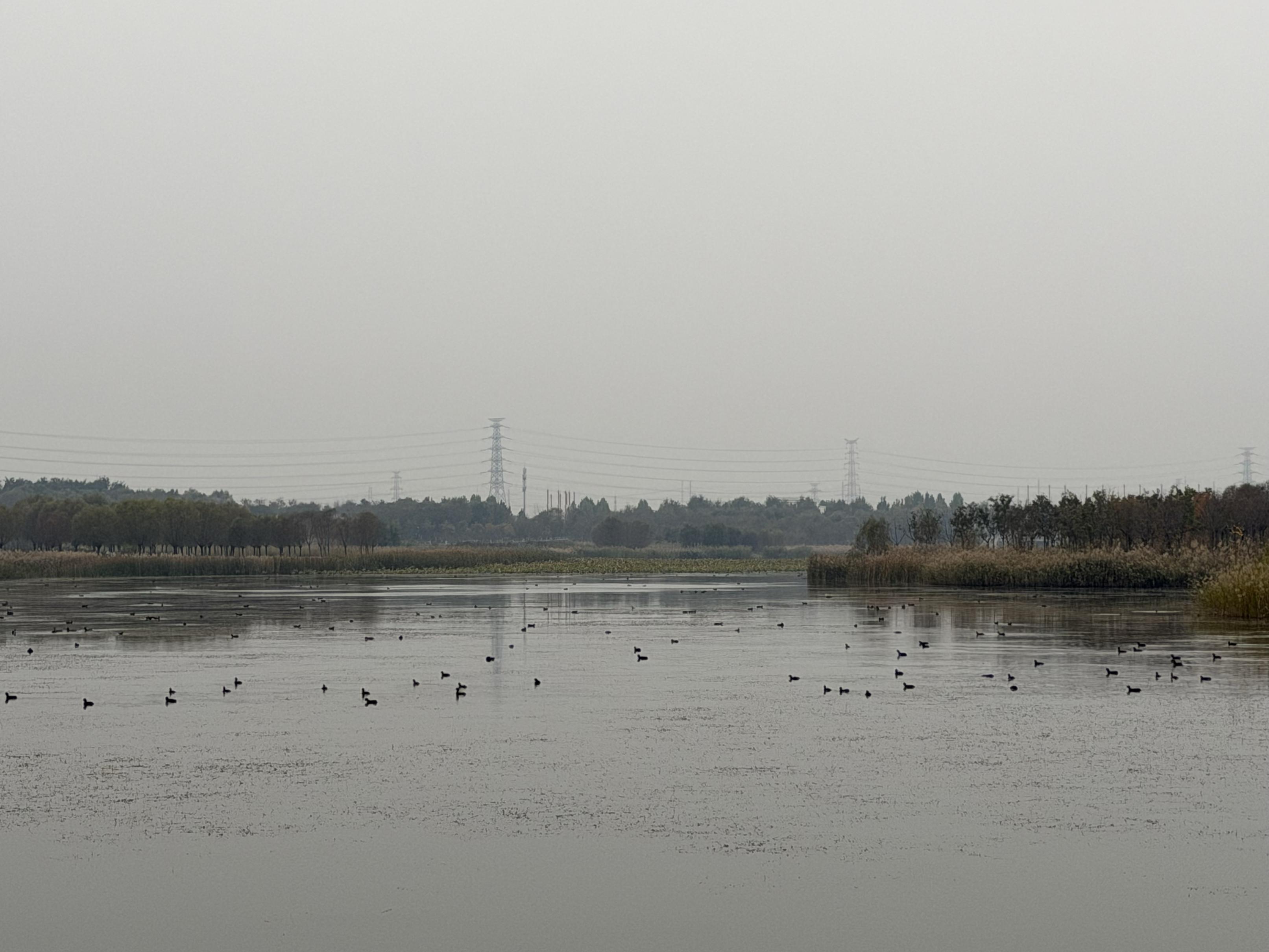 宋庄蓄滞洪区二期近日开门迎客。登上西入口主山“四季之廊”向下俯瞰,视野豁然开朗,树木一棵挨着一棵,黄红交织色彩绚丽。大片的水域湿地,现已观测到绿头鸭、黑水鸡、斑嘴鸭等在内的50多种依水而栖的水鸟,不少拍鸟爱好者也闻讯前来打卡。