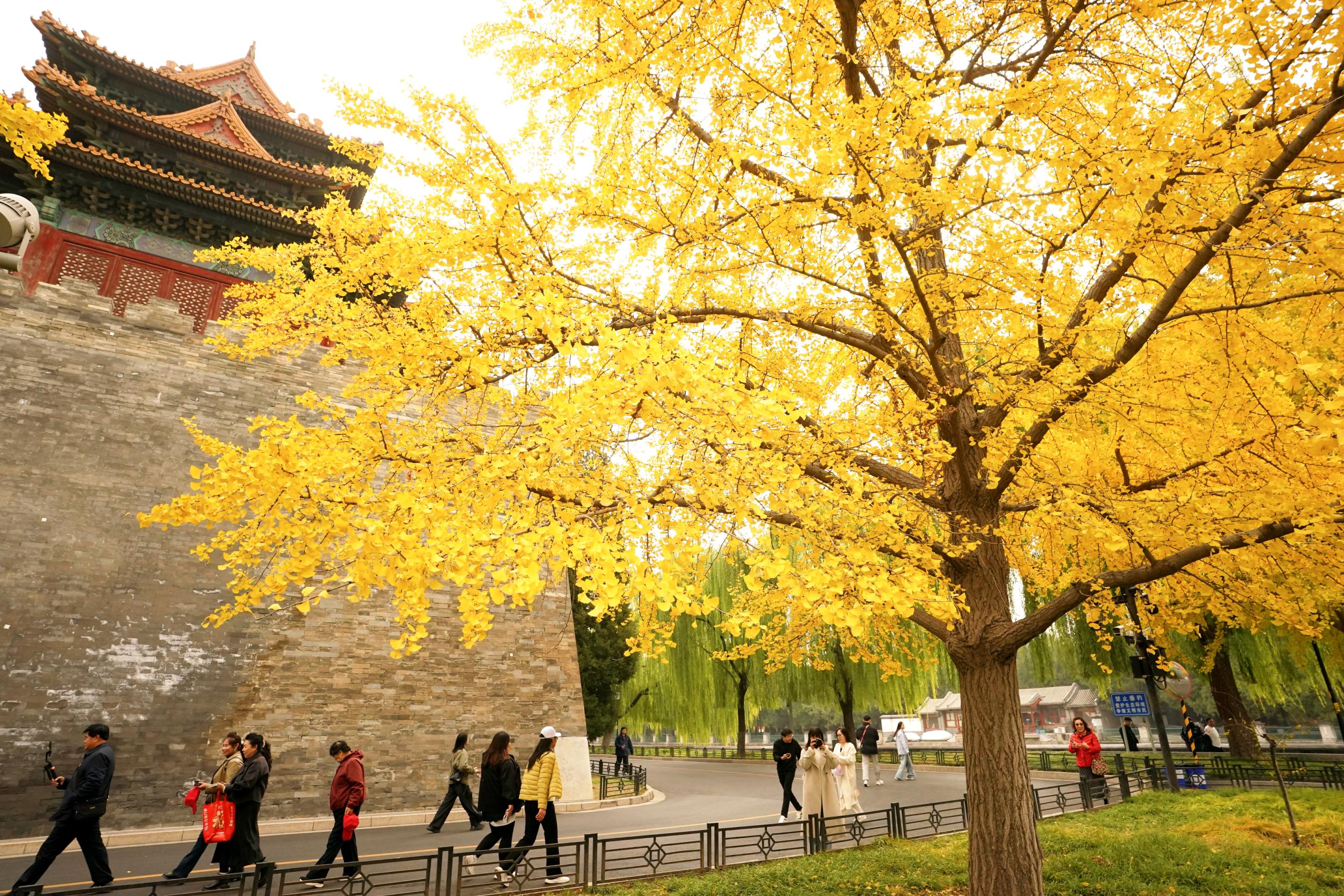 近日,筒子河畔已是秋意浓深。金黄的银杏叶随风轻摇,层层叠叠映衬着宫墙与琉璃瓦,勾勒出一幅兼具历史厚重与自然灵秀的秋日画卷。