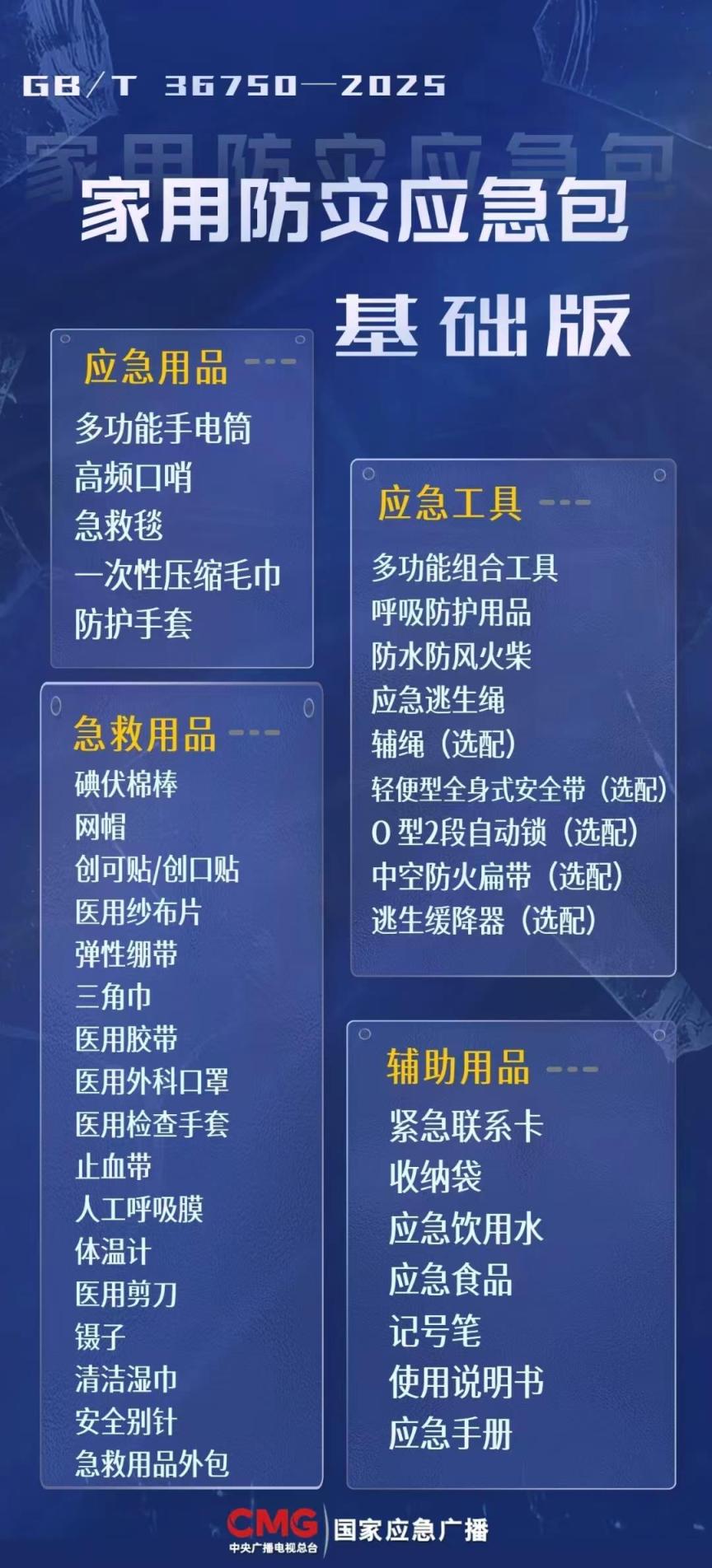 如今,统一的标准有助于企业生产合规产品,引导家庭按需采购符合国标的应急包,避免了“过度配置”或“配置不足”,提升应急包的实用性。