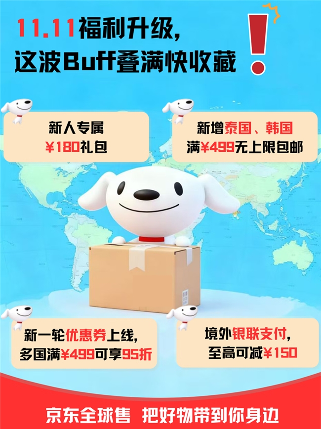京东11.11全球售福利现正火热放送中,无论你是想囤家乡味的海外游子,还是追求高性价比好物的华人用户,只需打开京东APP搜索“全球售双11”,就能一键解锁跨境包邮、新客礼包、百亿补贴等多重优惠,享受优质商品与购物服务体验。