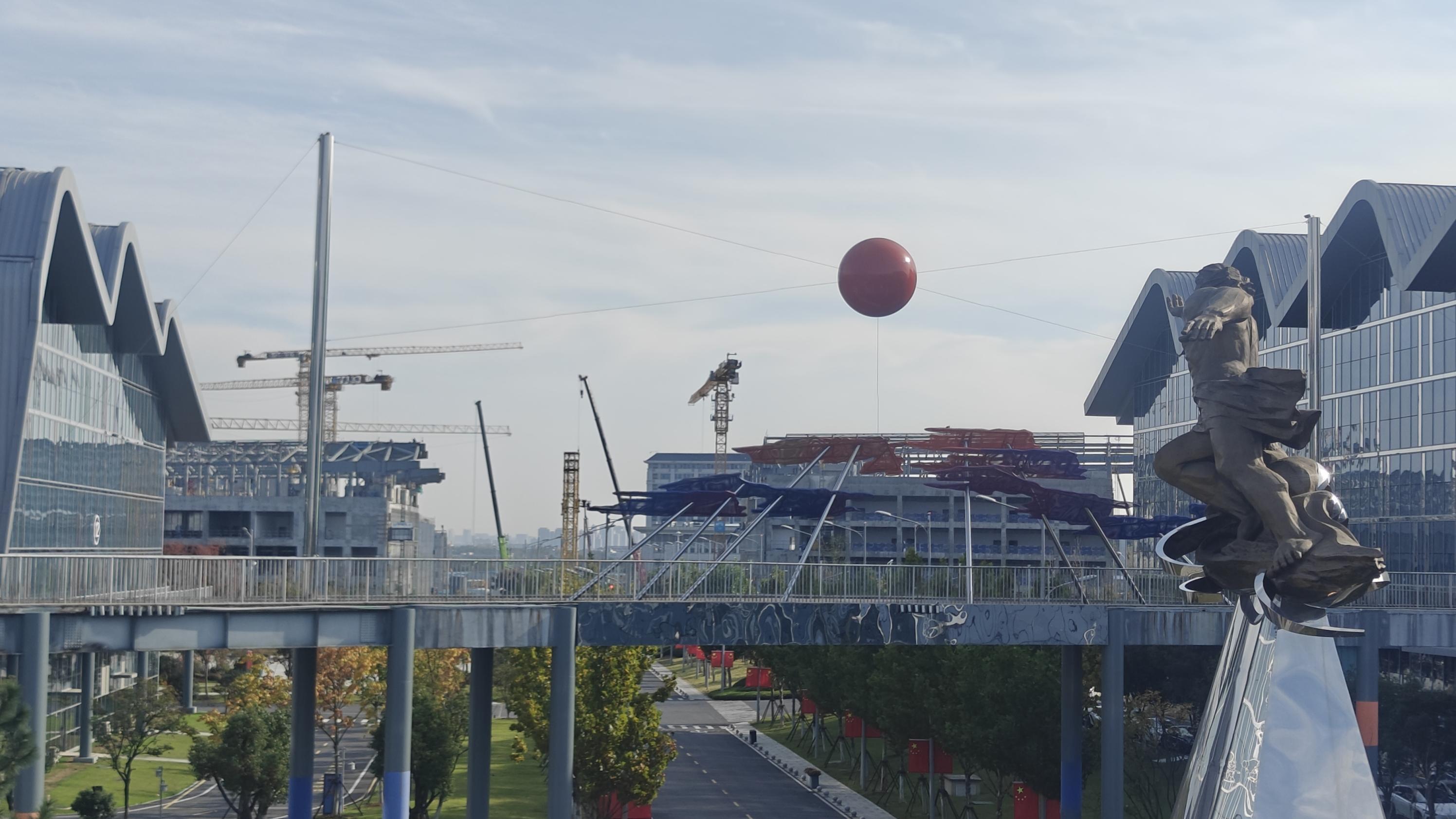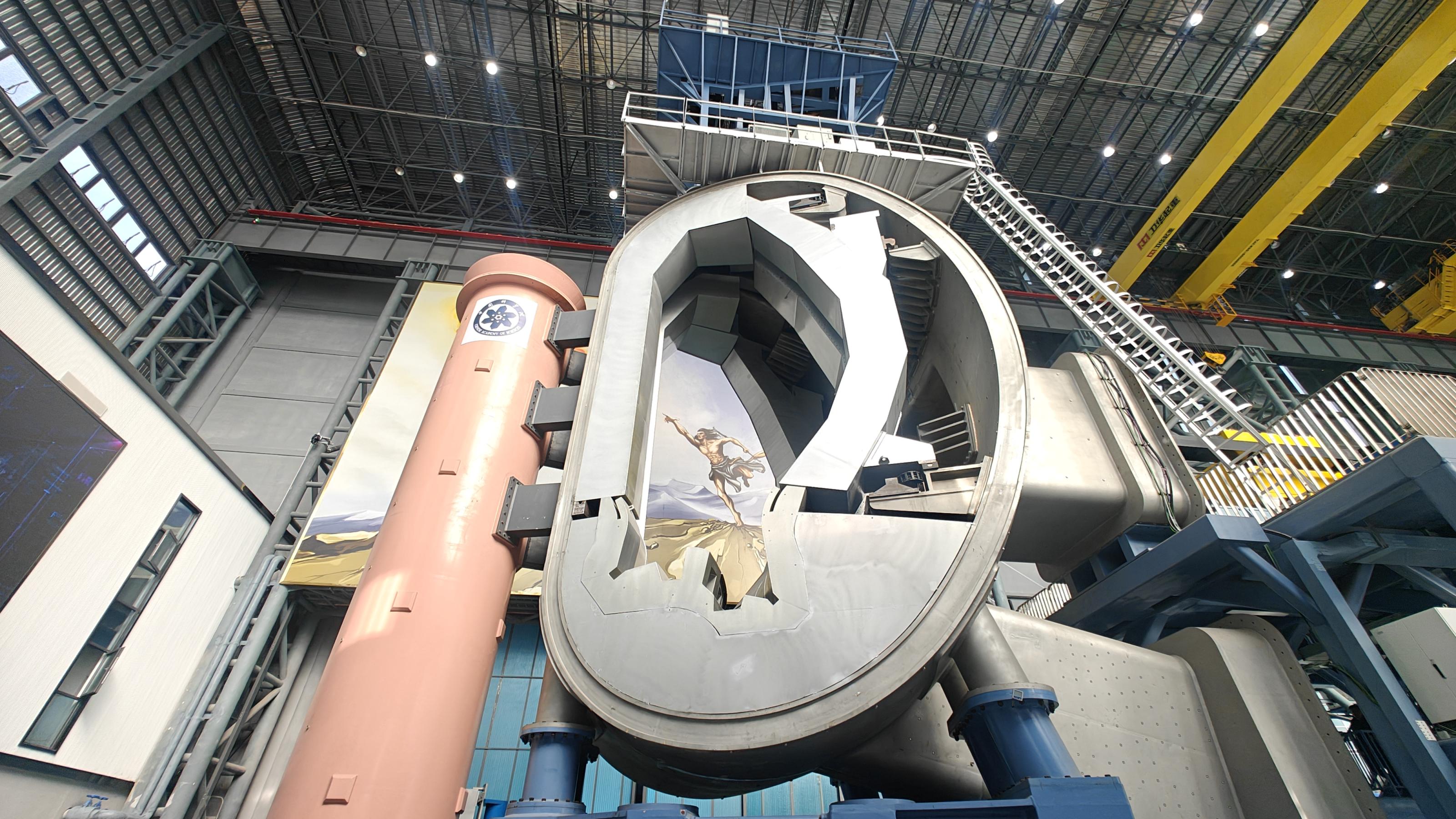 “夸父”园区中央,一座夸父雕像立于一座金属山峰之上,他身体前倾,前后伸出双臂,仿佛飞翔。远处塔吊林立处,紧凑型聚变能实验装置(BEST)主机大厅已经封顶。就在今年国庆节当天,其首个关键部件实现“毫米级落座”,正式进入主机组装阶段。