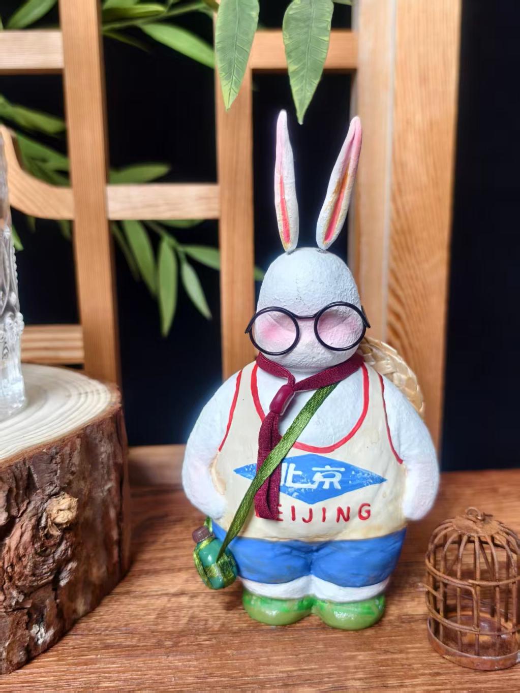 “我们发现消费群体不断年轻化,于是按照‘守正创新’的原则,将传统民间艺术与现代时尚审美相结合,让兔儿爷小型化、可爱化,适配电脑桌、收纳格等摆放场景。”作为北京“吉兔坊”创始人,胡鹏飞精准捕捉到当下年轻人对于“松弛感”的追求,在前不久设计出一组兔儿爷的悠闲时刻摆件。