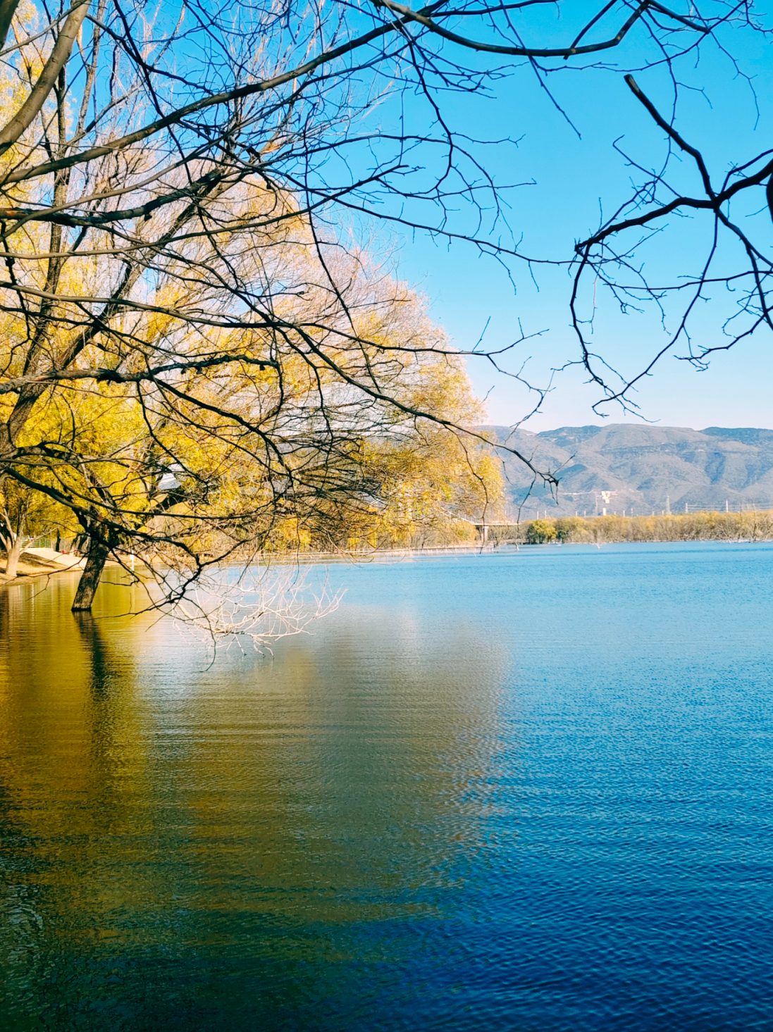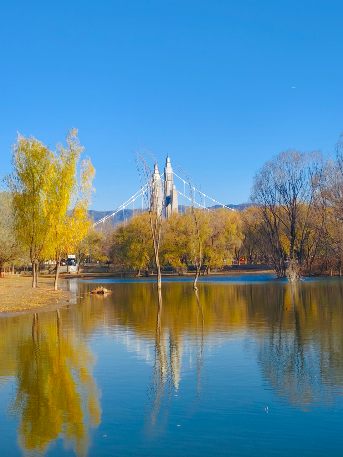 昌平有湖,名唤白浮。若说它是京郊私藏的“小洱海”,倒也不算夸张——初冬时节,沿湖信步,柳丝蘸着微寒轻摇,黄叶未落,仍悬枝头作金浪翻涌。风过处,树影碎在镜湖里,山峦与南大桥隐入淡墨,活脱脱一幅天然水墨。