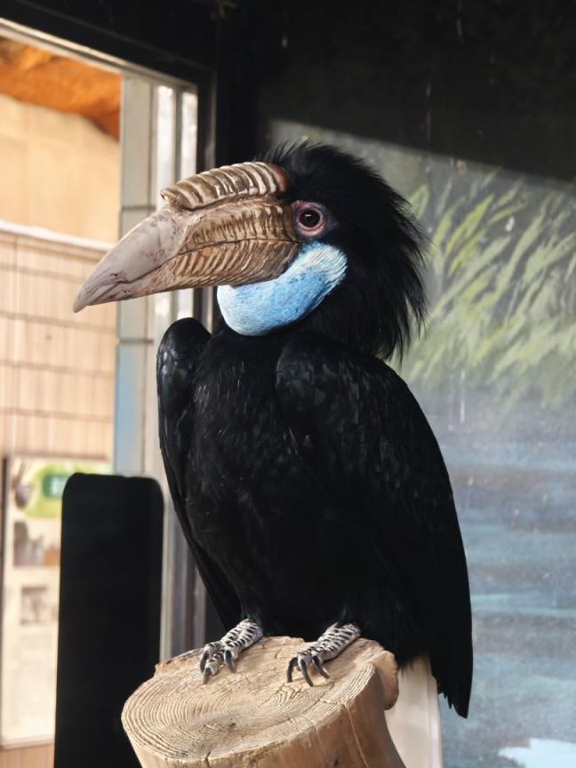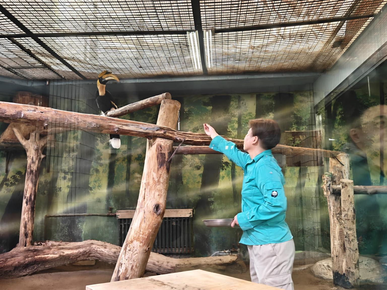 给游客科普鸟类知识,默潇总是从场馆里的实际场景开始,“鹦鹉的栖架为什么多是竖着的,因为它们是攀禽;犀鸟的栖架要更粗,地犀鸟的栖架特意放得低,这都和它们的生活习性息息相关。”