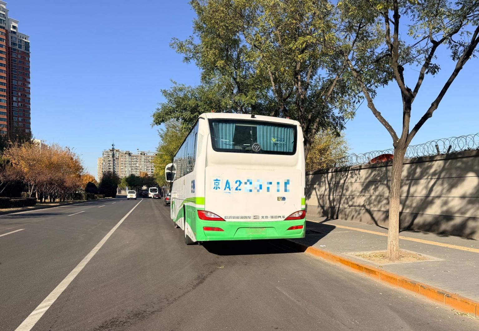 走近观察发现,这些无牌车辆中仅有少数放置了临时行驶车号牌,但部分临牌的有效期已明显过期,另有多辆悬挂“鲁”“冀”“津”等外地临牌。在怡康路南端,部分无牌车辆甚至侵占了人行便道,导致行人被迫绕行。非机动车道上,还停放着多辆未悬挂号牌的中巴车、大巴车,仅在车身用蓝漆喷涂了号码字样。