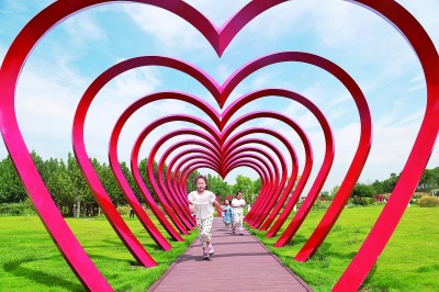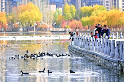 甘肃定西市,市民在公园内赏景游玩。新华社发