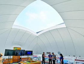2025中国国际服务贸易交易会上,参观者在了解具有防尘、降噪作用的基坑气膜技术。新华社发