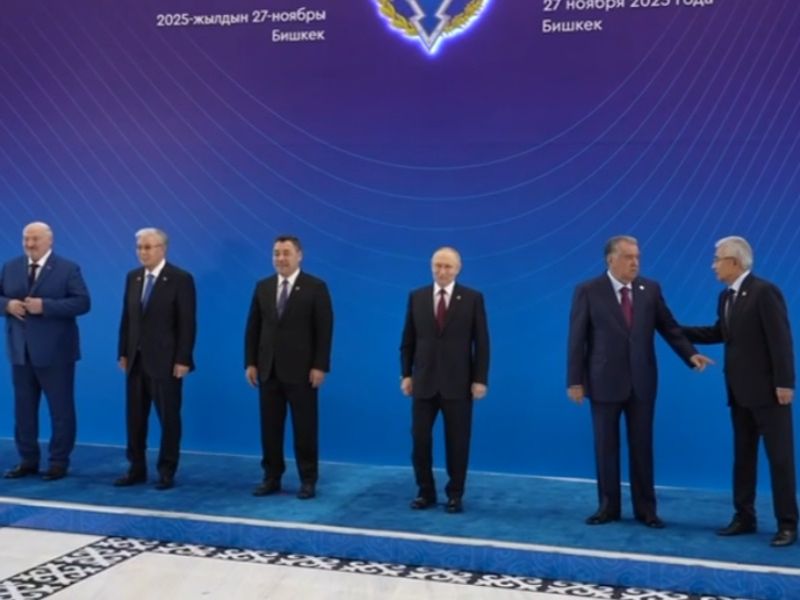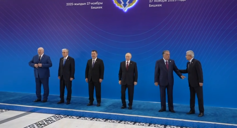 当地时间11月27日中午,集体安全条约组织(集安组织)峰会在吉尔吉斯斯坦首都比什凯克举行。俄罗斯、白俄罗斯、哈萨克斯坦、吉尔吉斯斯坦和塔吉克斯坦五国总统及集安组织秘书长在峰会开始前合影。据集安组织发布的消息,此次峰会计划通过一份反映成员国在当前安全问题上统一立场的《宣言》,并审议集安组织2026年至2029年秘书长候选人。