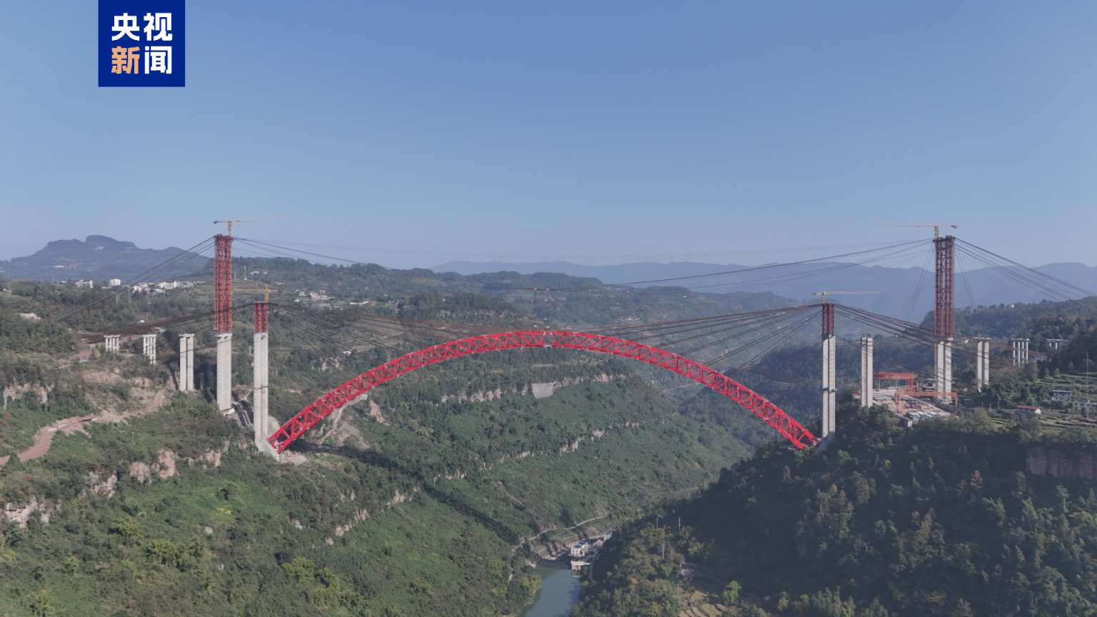 今日(27日),主跨580米的重庆武隆至两江新区高速公路凤来大溪河特大桥钢桁拱顺利合龙,标志着大桥建设迎来万吨悬臂体系转换的重大节点。