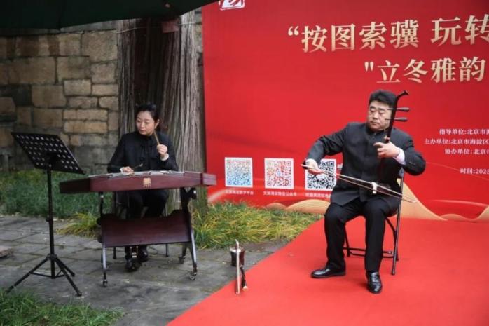 随着三声古钟悠扬响起,首场“立冬雅韵・碧云寻踪”在香山公园碧云寺启幕。中央音乐学院硕士张雪的扬琴清亮婉转,中国民族管弦乐学会会员季森的二胡深情款款,中央民族歌舞团民乐团团长马兰花的阮音醇厚绵长——专业音乐人专门挑选贴合立冬“万物内敛”意境的经典曲目,让雅乐与古寺静谧完美相融。“以前只在音乐厅听民乐,没想到在古树下、红墙旁欣赏,感觉旋律都有了历史的味道!”不少市民举着手机记录下这美好瞬间。
