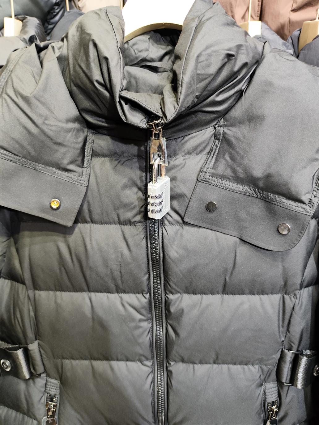 “为了防止客人穿过再退,只能这样干了……”今年“双十一”前,经营服装生意的李先生在社交平台晒出了自己给店内羽绒服加装的密码锁。只见黑色羽绒服的拉链上,连着一把巨大的密码锁,顾客联系商家确认收货后,他才会告诉对方开锁密码,这个方法很快就在网络上火了。