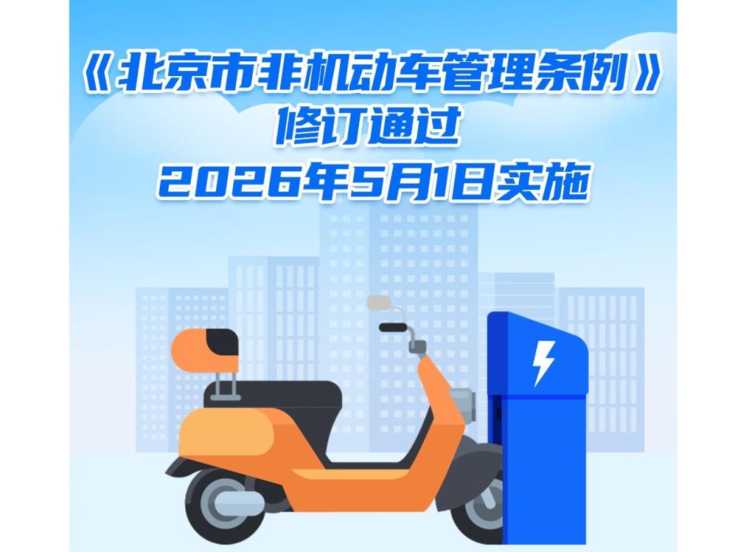 11月28日,新修订的《北京市非机动车管理条例》由市十六届人大常委会第二十次会议表决通过,将于2026年5月1日实施。