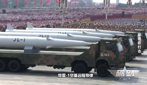 今年九三阅兵式上,惊雷-1空基远程导弹与巨浪-3潜射洲际导弹、东风-61陆基洲际导弹、东风-31新型陆基洲际导弹一同亮相,首次集中展示我军陆、海、空基“三位一体”战略核力量。