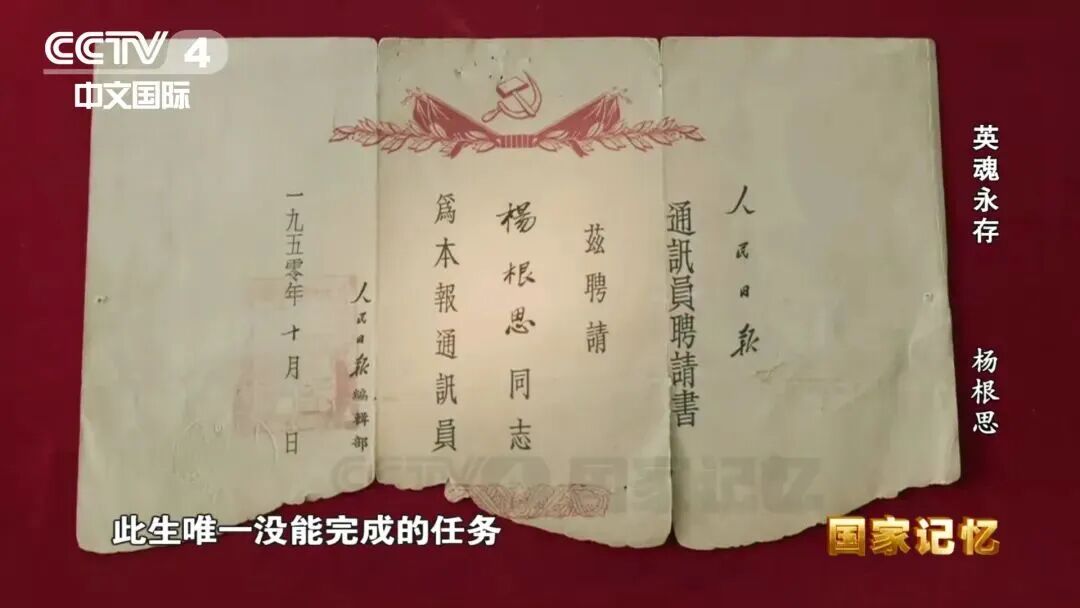 这一年,杨根思曾被《人民日报》社聘为特约通讯员。然而,杨根思没能用笔记录下他在战场上的经历,特约通讯员成为了他此生唯一没能完成的任务。