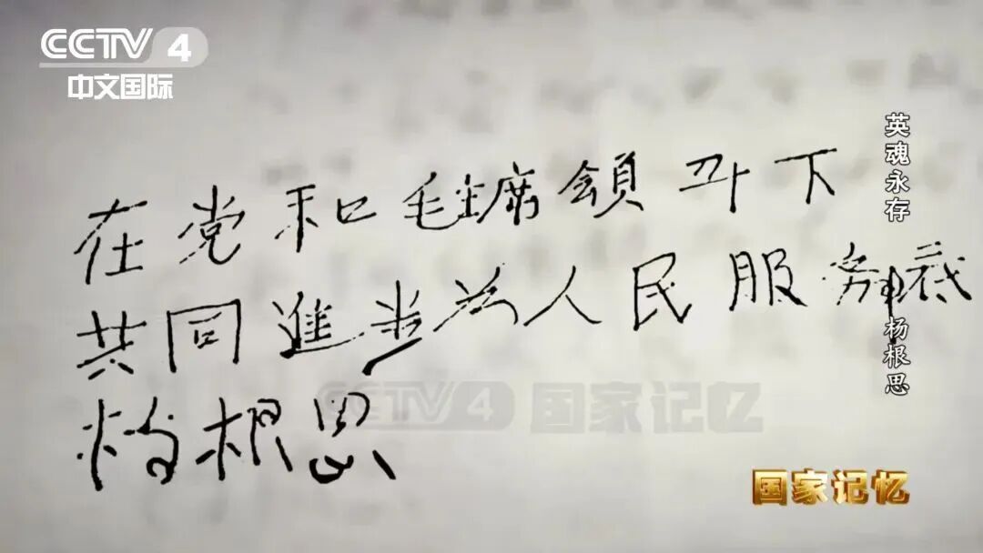 1950年9月25日,第一届全国战斗英雄和劳动模范代表大会在中南海怀仁堂举行。杨根思作为华东军区战斗英雄代表出席了大会。会上,他留下了这样的笔迹:“在党和毛主席领导下,共同进步为人民服务到底”。短短20个字,道出了杨根思心底最朴素的情感和信念。
