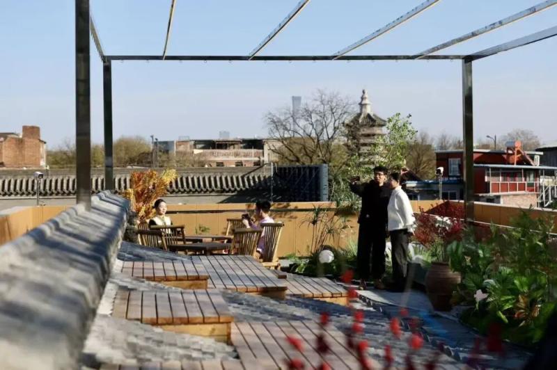 顶层露台是最佳观景台。放眼望去,青瓦连绵,与远处的现代建筑相映成趣,这里成了新的网红打卡点。