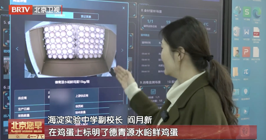 海淀实验中学副校长阎月新说,入库管理之后,我们对相关的食品食材还会要进行相关的处理,比如说鸡蛋,我们按照相关的要求要进行预清洁,在入库之后又要在当天进行使用,这样就保障了进入到学生口中的食物是新鲜的状态。