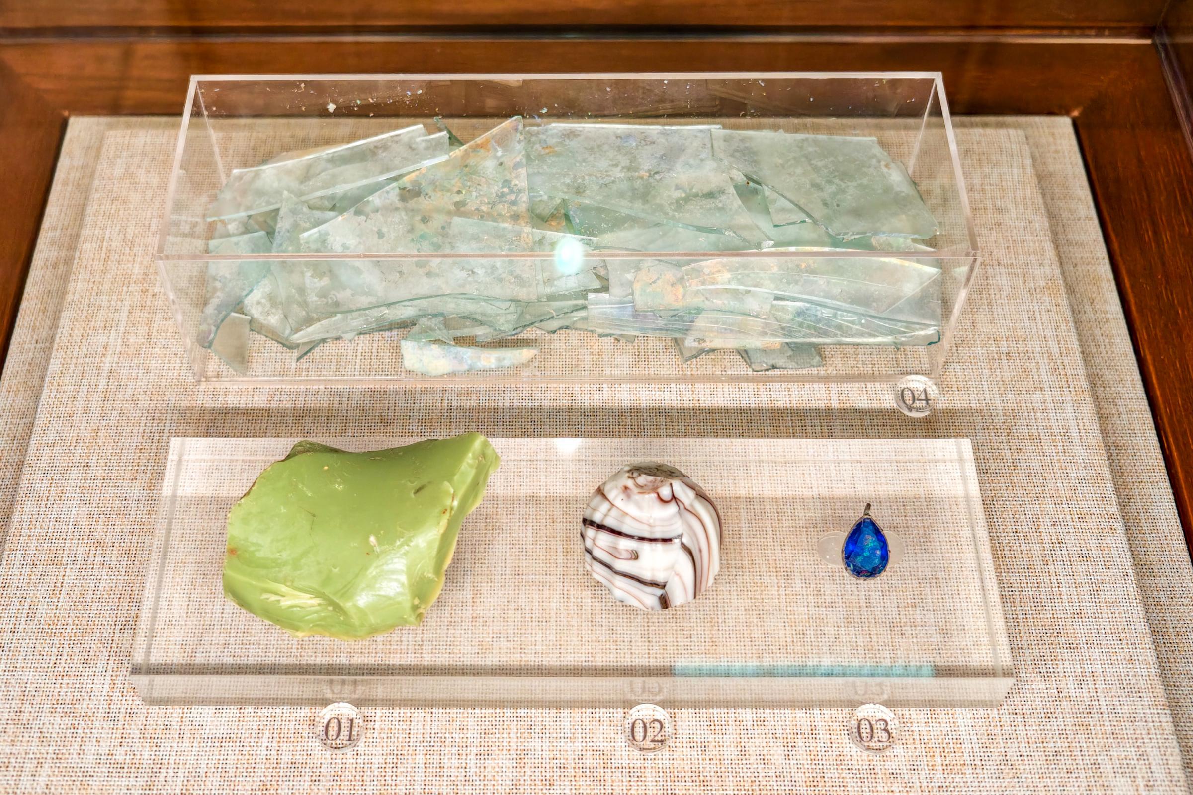 橄榄绿玻璃残片、绞丝玻璃残块,