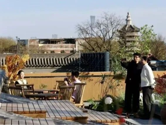 顶层露台是最佳观景台。放眼望去,青瓦连绵,与远处的现代建筑相映成趣,这里成了新的网红打卡点。