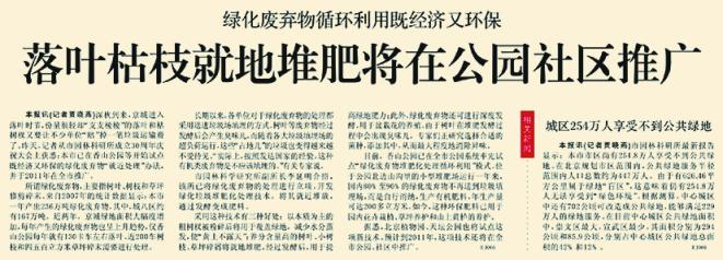 进入新世纪,随着城市建设步伐的加快,北京的绿化面积逐渐增加。只是一到秋冬时节,大部分落叶还是按照垃圾进行填埋处理,这些有机资源并没有得到很好利用。不过,一项“落叶换肥”活动令人们对落叶的认识有所改变。