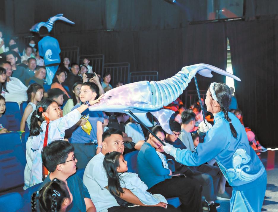 在世界花卉大观园茗赏百花厅,由一群孩子主演的科普剧《花青素卫士》,吸引了很多小朋友围观。4岁的小石头聚精会神地盯着小哥哥小姐姐的表演。小石头妈妈说,这里有很多孩子能参与的活动,“票都得抢,不然一会儿名额就被抢空了!”