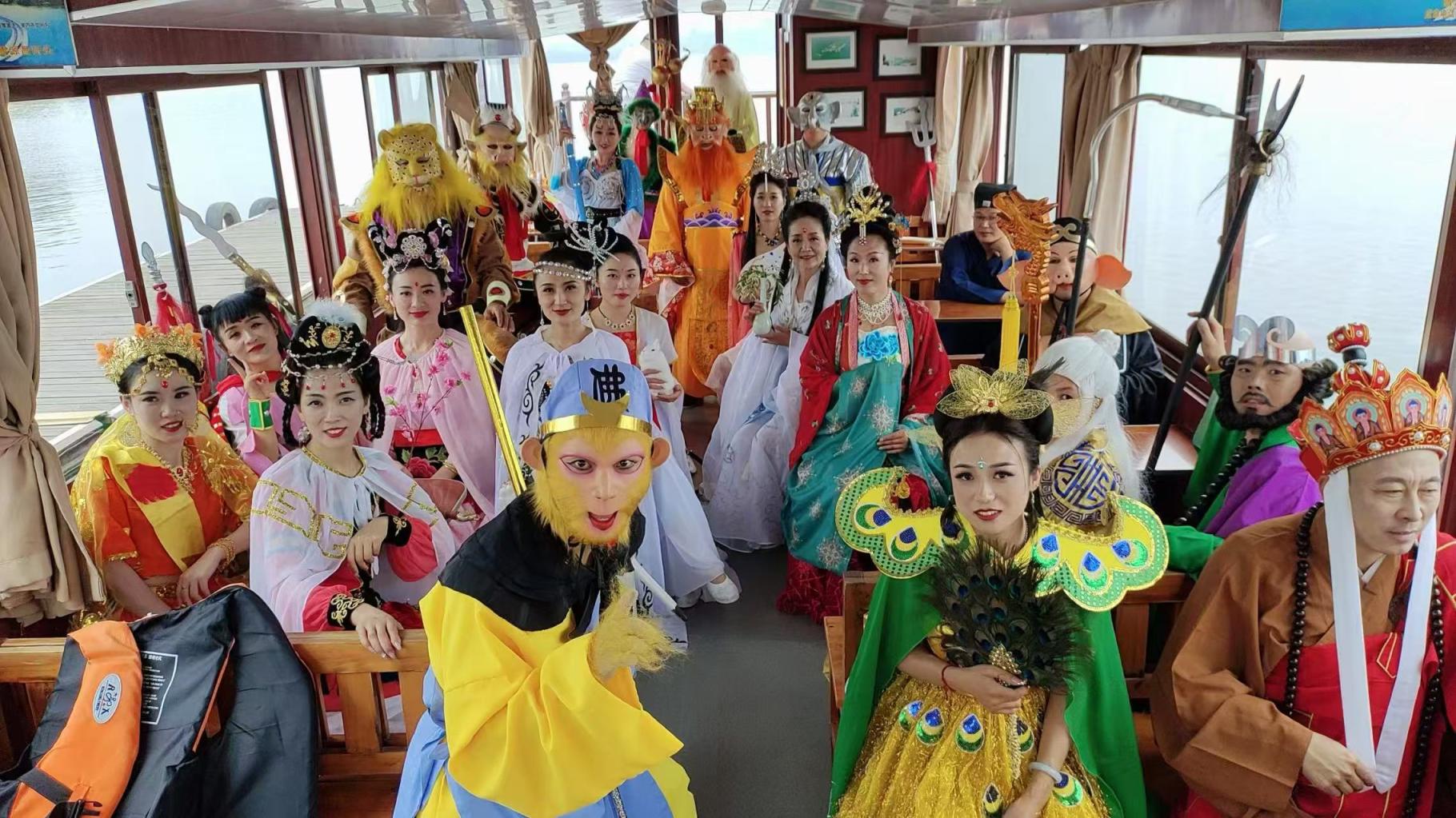 现场,将有60位西游人物与游客互动,唐僧、孙悟空、嫦娥等经典角色轮流登场,上演《大圣归来》《三打白骨精》等近20场小节目。主舞台还将有电音演出,结合民族乐器,让音乐既有节奏感,也充满古典韵味。