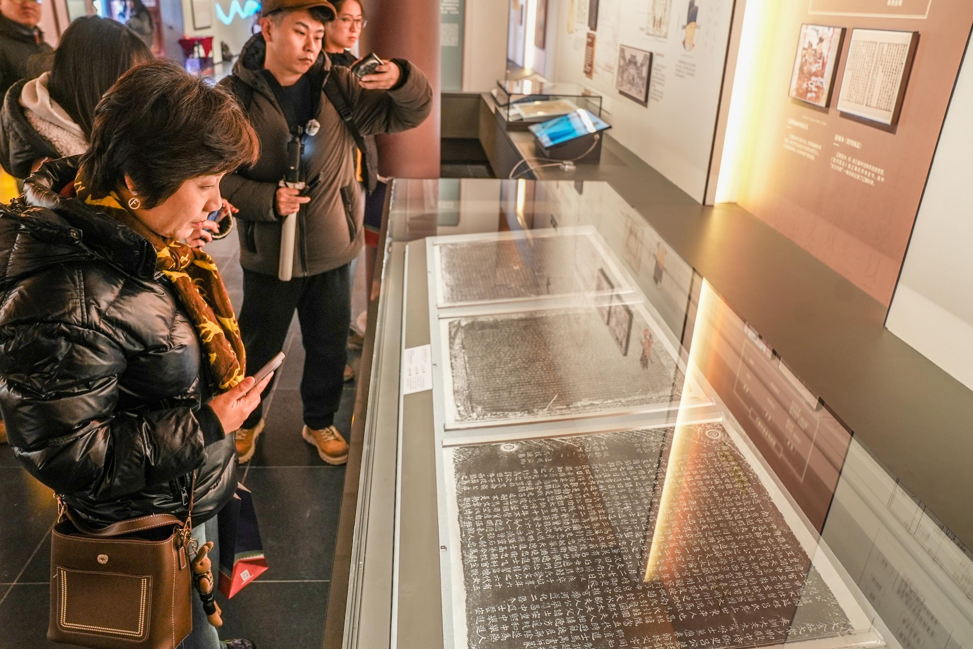 展厅里,130余件展品按照“选贤弘志”“杏园征途”“抡才天下”3个部分,完整勾勒科举制度1300余年的发展历程。“从先秦时期的乡举里选,到秦代的军功爵制,再到汉代的察举制、魏晋南北朝时期九品中正制的尝试,直至唐代科举制度确立,每一项制度都体现了中华民族选贤任能的政治智慧。”孔庙和国子监博物馆副研究馆员李晓頔举例,一件展出的墓志拓片记载了隋代人王卿“自举高才”,入仕为官的事情。而到了唐代,“自由报考、公平竞争”的科举制度确立,国家选人用人模式发生改变。