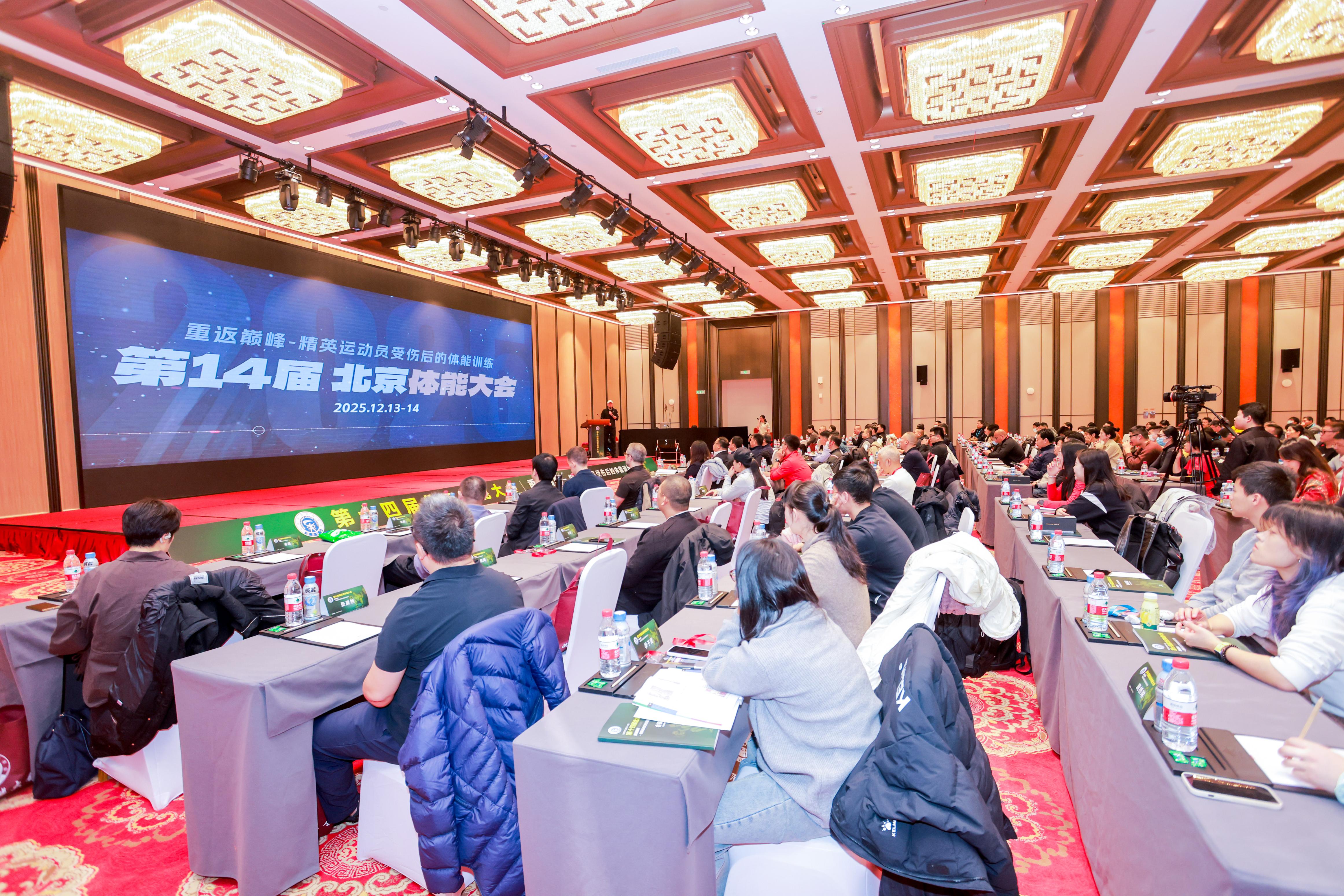 2025年12月13日至14日,由中国体育科学学会体能训练分会指导、北京体育科学学会主办的第十四届北京体能大会,在北京中和大饭店成功举办。本届大会创新采用“线上+线下”融合模式,汇聚全国25个省市、36所高校及相关机构的350余名体能教练、体育科研人员、教练员、康复师及专业学生现场参会,近500人通过线上渠道同步参会。