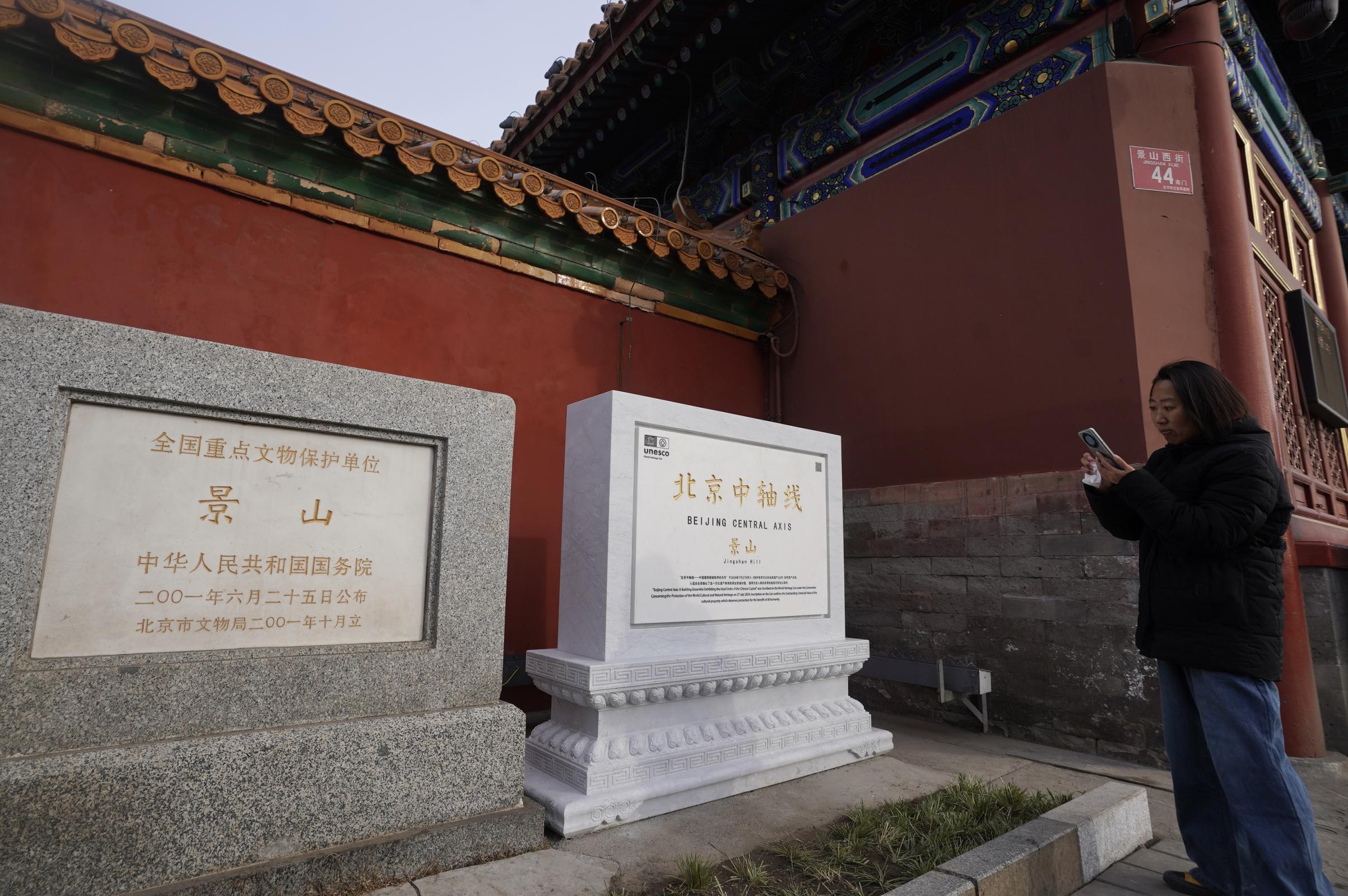 青白石基、汉白玉牌心的北京中轴线世界遗产碑以中英文镌刻“北京中轴线——景山”及UNESCO标识,不仅标志着景山作为中轴线核心遗产点的世界性身份,更串联起从“国家文保”到“世界遗产”的双重荣誉。