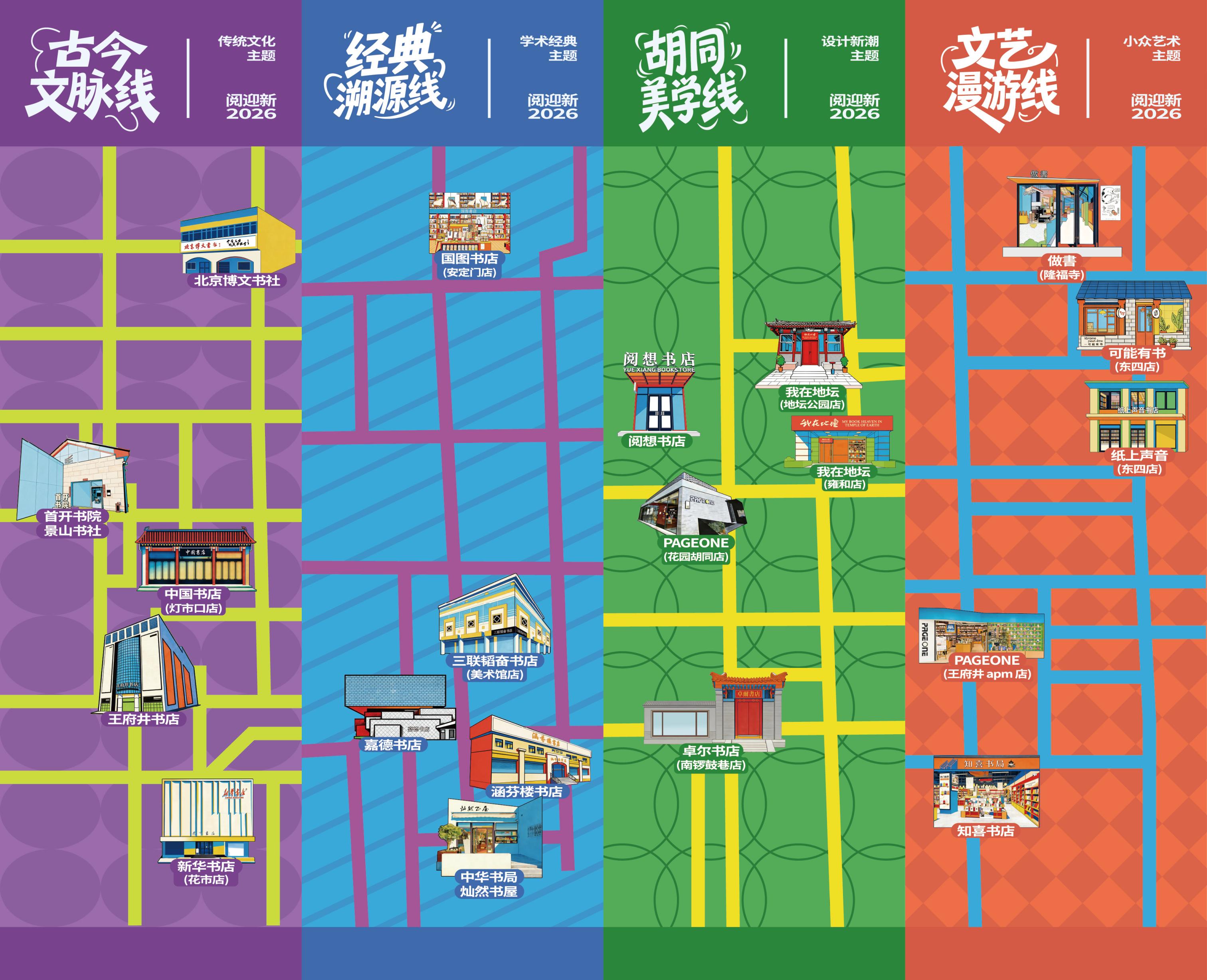 活动推出“古今文脉线”“经典溯源线”“胡同美学线”“文艺漫游线”4条“阅游东城”主题线路,串联王府井书店、三联韬奋书店(美术馆店)、我与地坛(雍和店)、可能有书(东四店)等20处代表性书店与阅读空间,配套详解特色活动,为市民提供可读、可游、可感的立体化漫读指南。同期启动的“阅游东城手账”新春创游活动,覆盖地图上的王府井书店、中国书店(灯市口店)、三联韬奋书店(美术馆店)等多家书店。市民可领取新春主题手账,通过完成阅读任务、打卡集章,收集专属印章并兑换限定文创,在互动中感受书香年味。