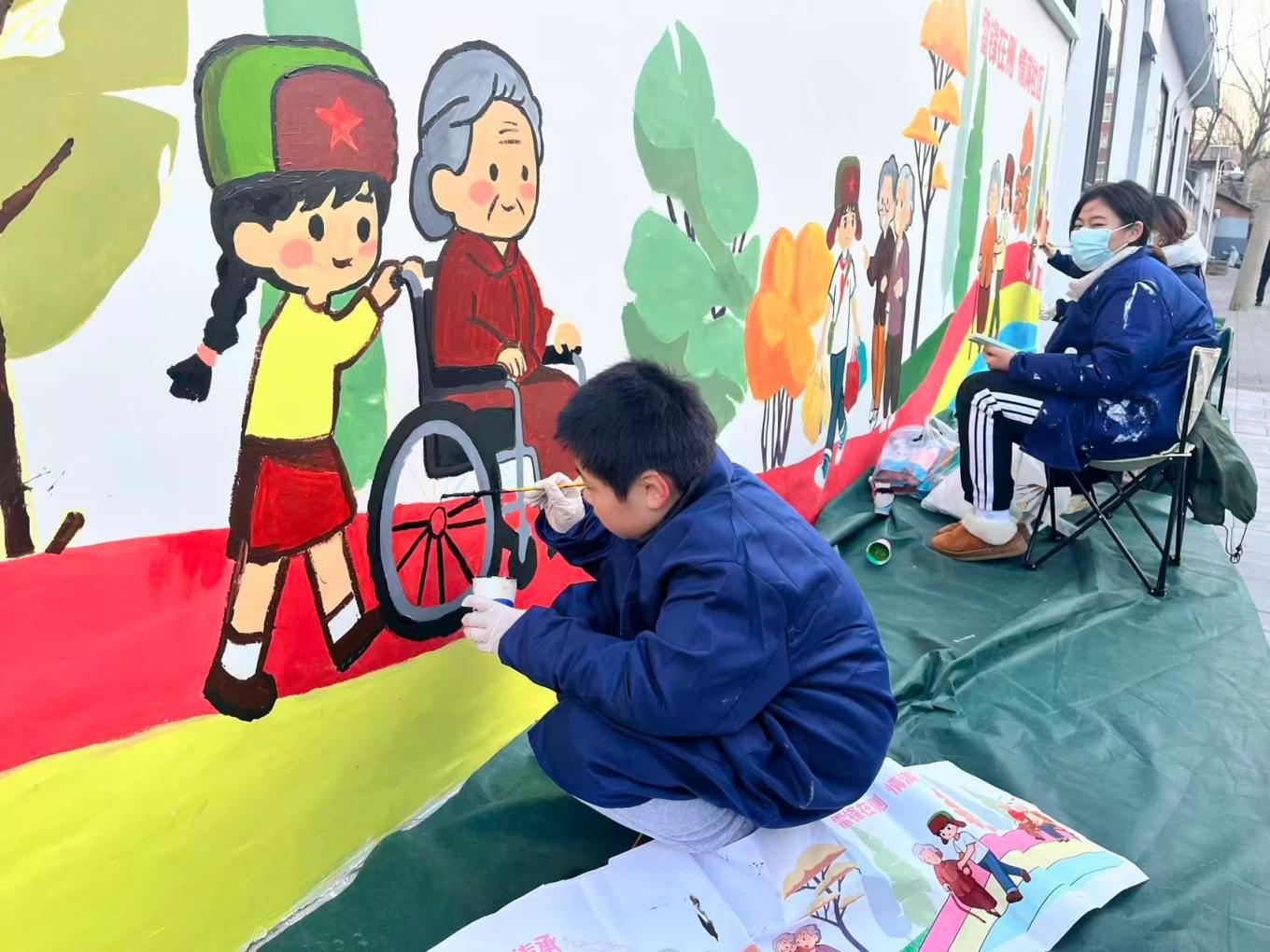 大手小手来合作!北建大学子与社区儿童为斑驳墙面改头换面