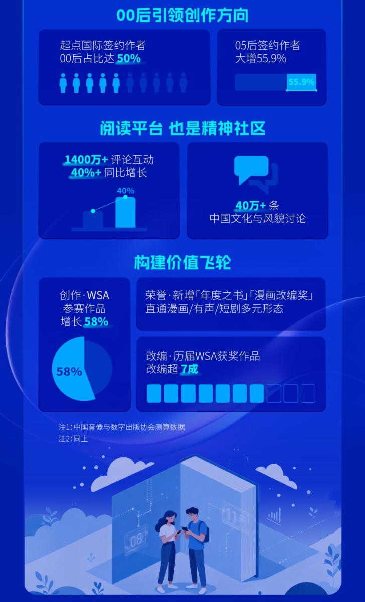 在内容生态方面,截至2024年底,中国网络文学作品累计规模已达约4210万部,海外原创生态同样蓬勃,截至2025年10月31日,起点国际(WebNovel)全球累计访问用户已近4亿,培育孵化了来自全球的近53万名作家、超82万部原创作品,作品总量同比增长20%,其中阅读量突破千万级的爆款已达538部。