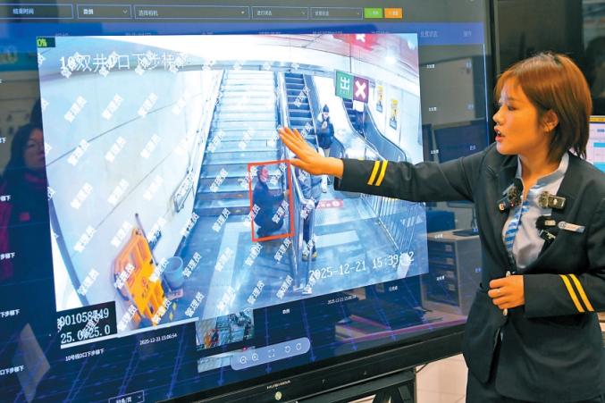 这套系统的功能不止于大客流监控,还将轮椅、婴儿车等特殊出行设备识别纳入基础监测场景。系统运行以来,车站已主动识别各类特殊服务需求1000余次,核实响应率达100%。“不少乘客都觉得很惊喜,有轮椅乘客反馈,刚进站就有工作人员主动上前提供帮助,特别贴心。”徐海静说。
