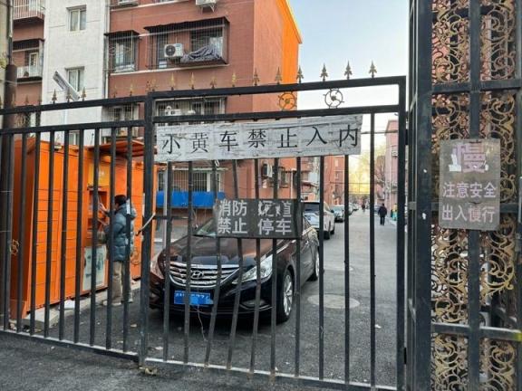 除了双桥六号井小区南区存在占用消防通道的情况外,记者看到,在双桥六号井小区北区,写着消防通道的几处出入口也停满了私家车,许多车上都落了厚厚一层土,看起来已经许久未挪动、清理。