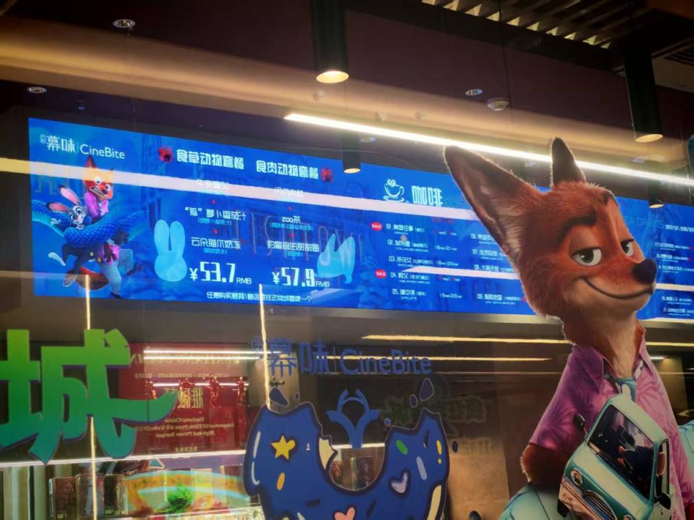 北辰荟地下一层的幕味餐厅,与华夏电影中心相邻,在餐厅前台可以直接点击屏幕购买电影票。最近正在热映的是动画电影《疯狂动物城2》,餐厅专门推出了电影主题的食草动物套餐和食肉动物套餐,并且售卖电影主题周边产品。在KPL年度总决赛期间,这里还推出了战队粉丝专属套餐。服务员张姐说:“演唱会也有活动,我们这里今年开业以后第一个活动就是为张艺兴演唱会打造的。”