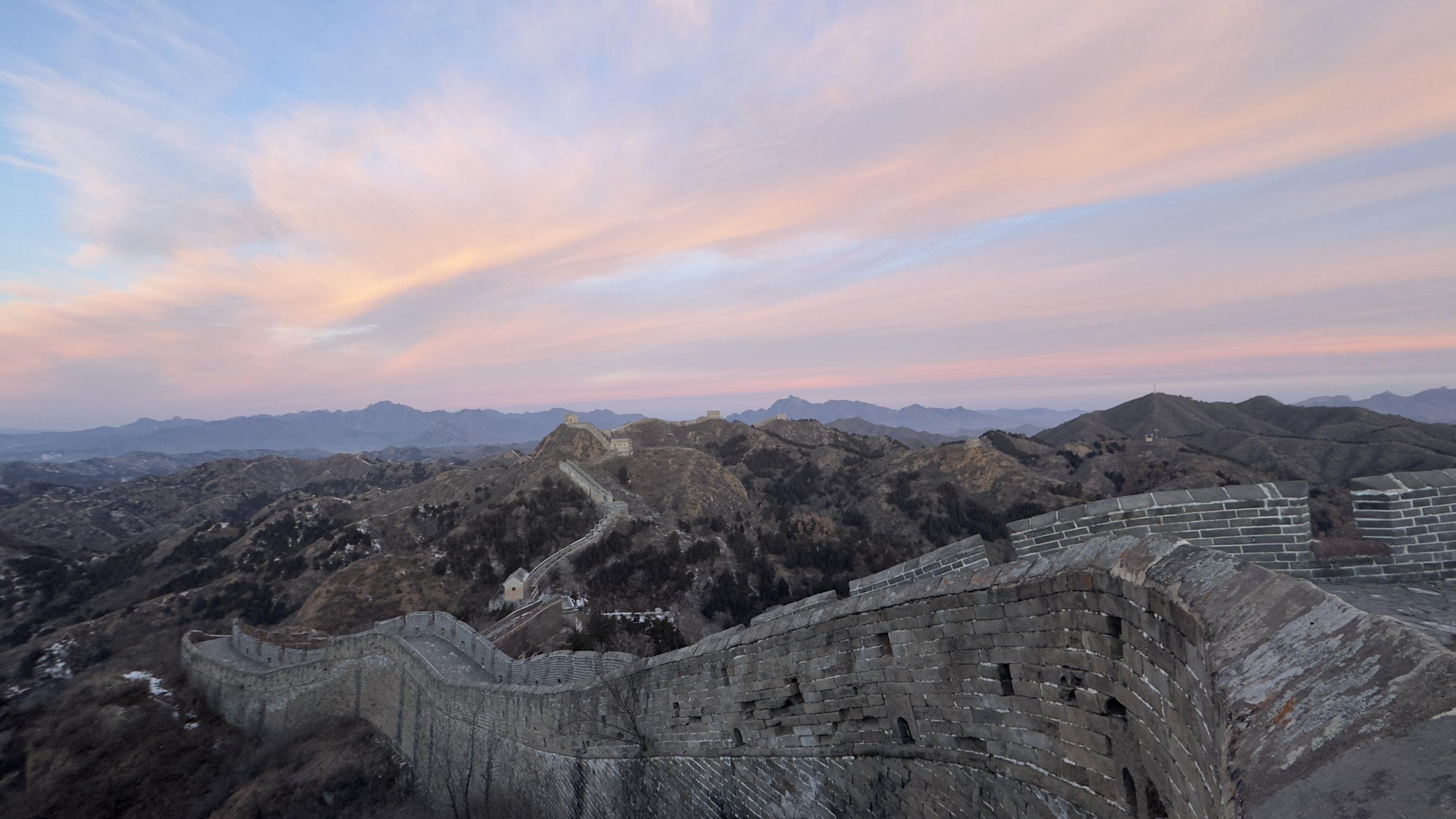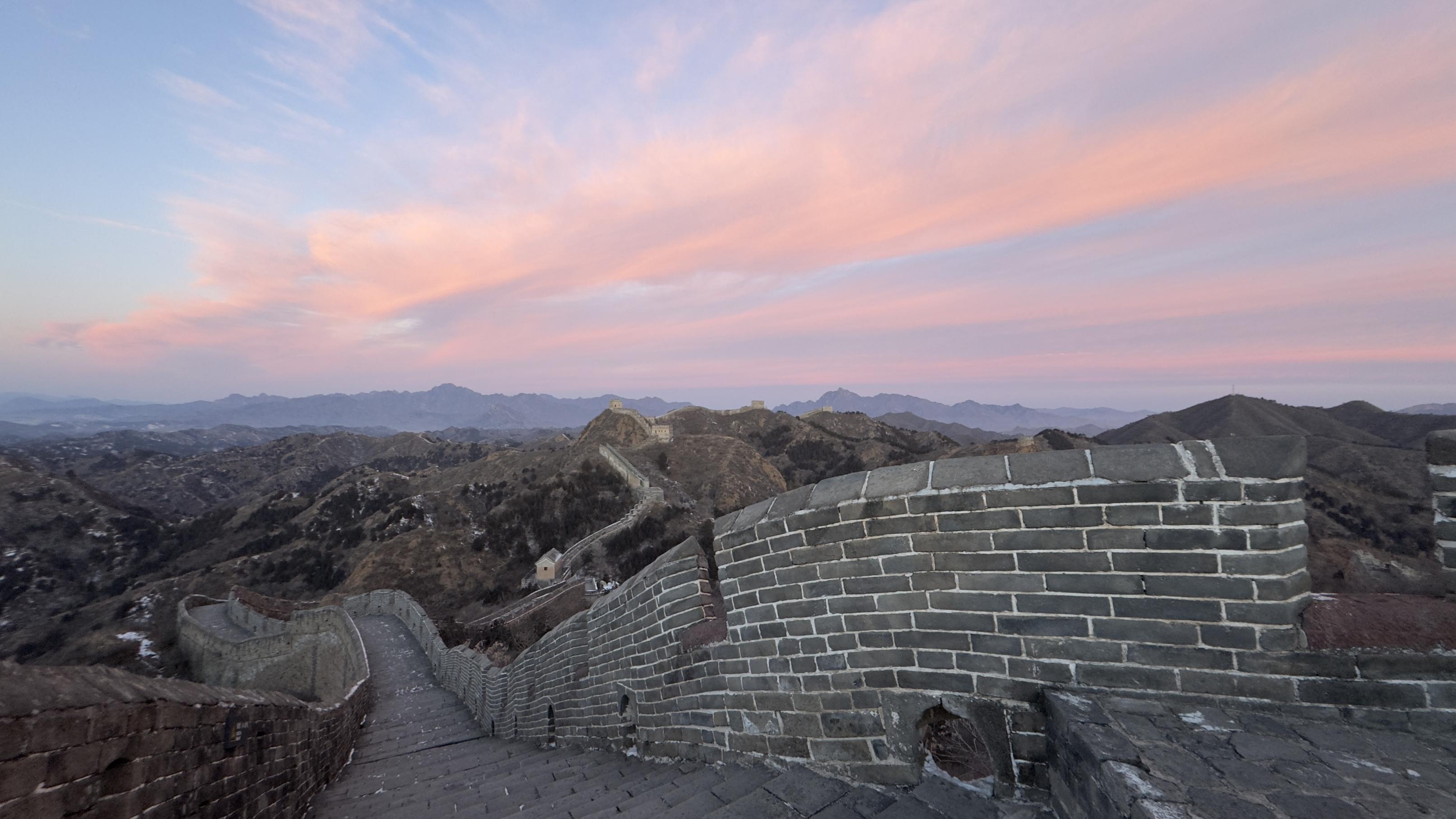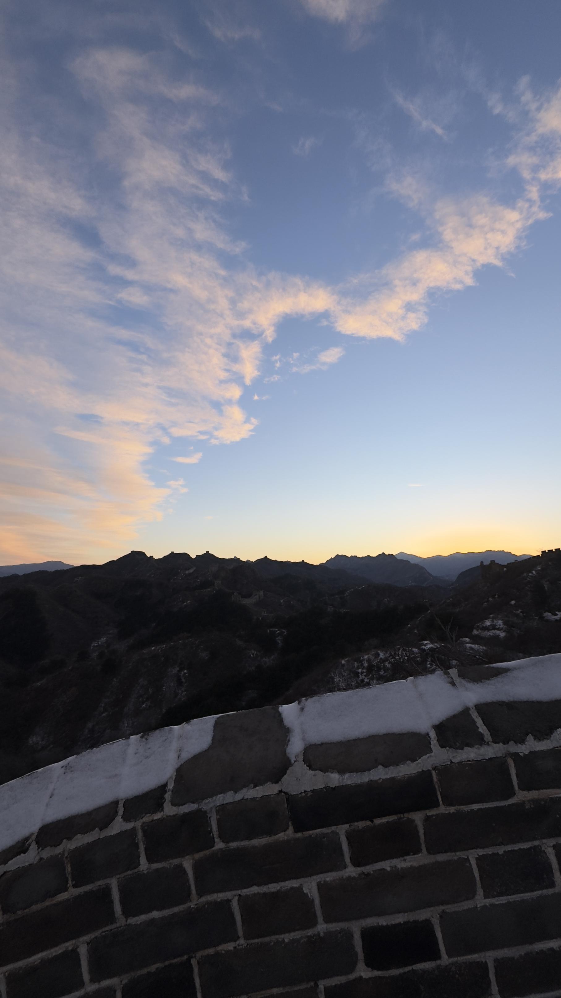 12月24日,雪后清晨,河北省滦平县的金山岭长城,出现绚烂夺目的朝霞景象。