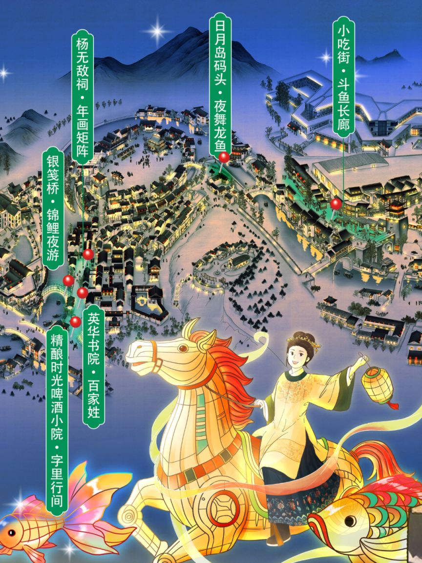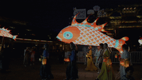 灯笼万千超出片、金鱼学堂廊道灯影摇曳