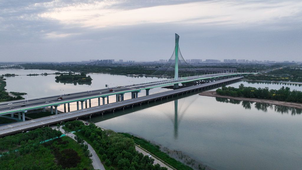 5月14日拍摄的河北省石家庄市复兴大街滹沱河特大桥(无人机照片)。新华社发